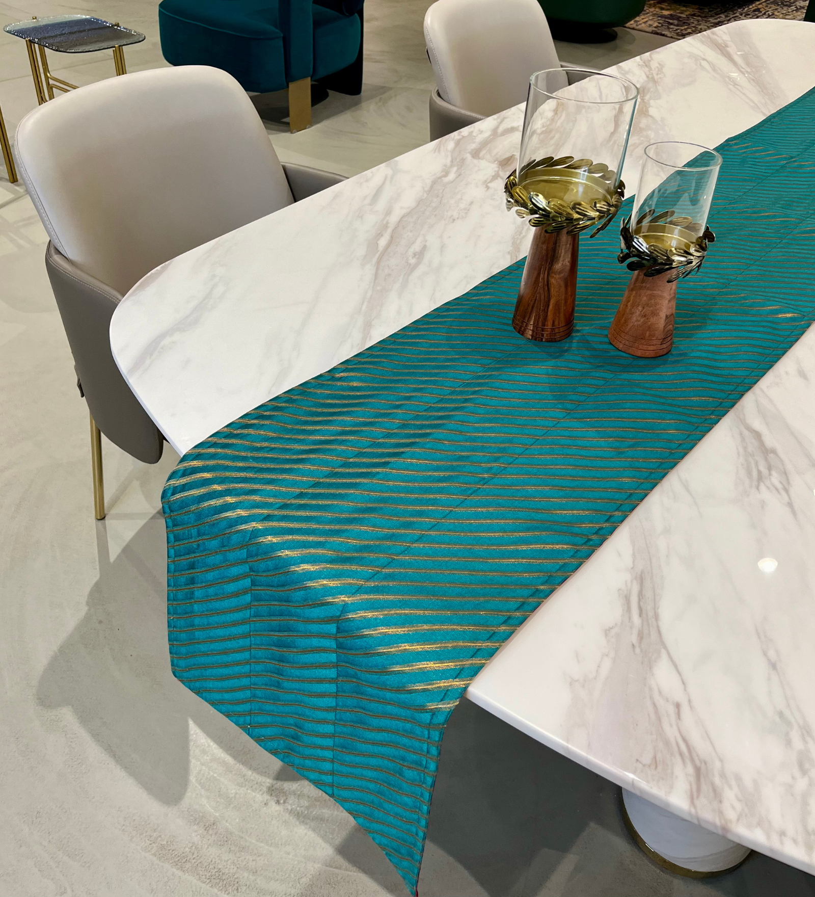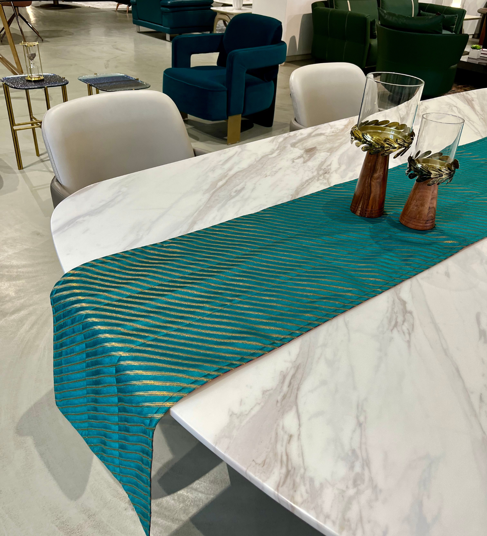 We have worked out the right table runner dimensions for your dining table. Our table runners come with a width of 13”. This will leave enough space on either side of the table so that your place settings don’t overlap with your runner.