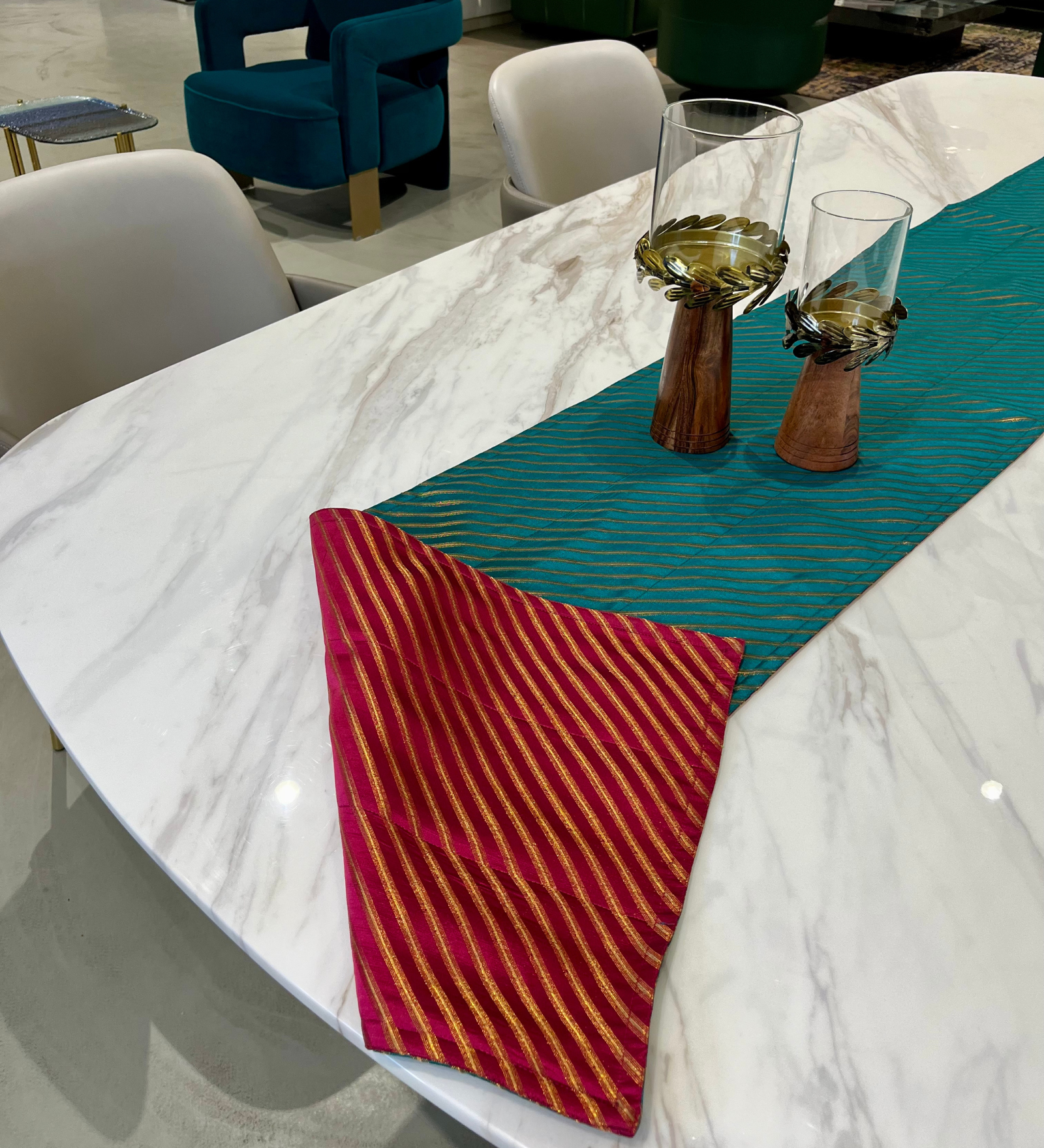 Our Silk Brocade Table Runners bring an exquisite blend of elegance and luxury to your dining or console tables. Made from premium silk with intricate brocade patterns, these runners instantly elevate your decor with their rich textures and timeless appeal. Perfect for special occasions or everyday opulence, they add a refined touch to any setting, making your tables the true centerpiece of any room.