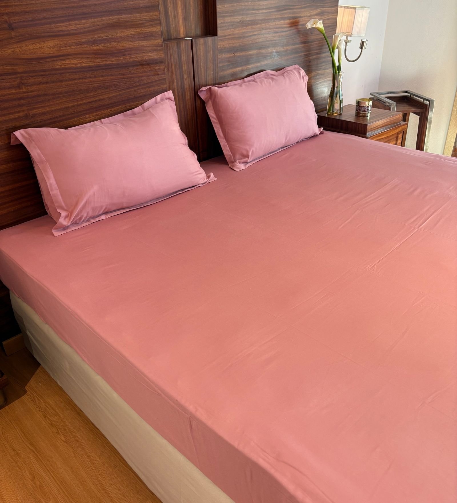Blush Pink Sateen Plain Bedsheet