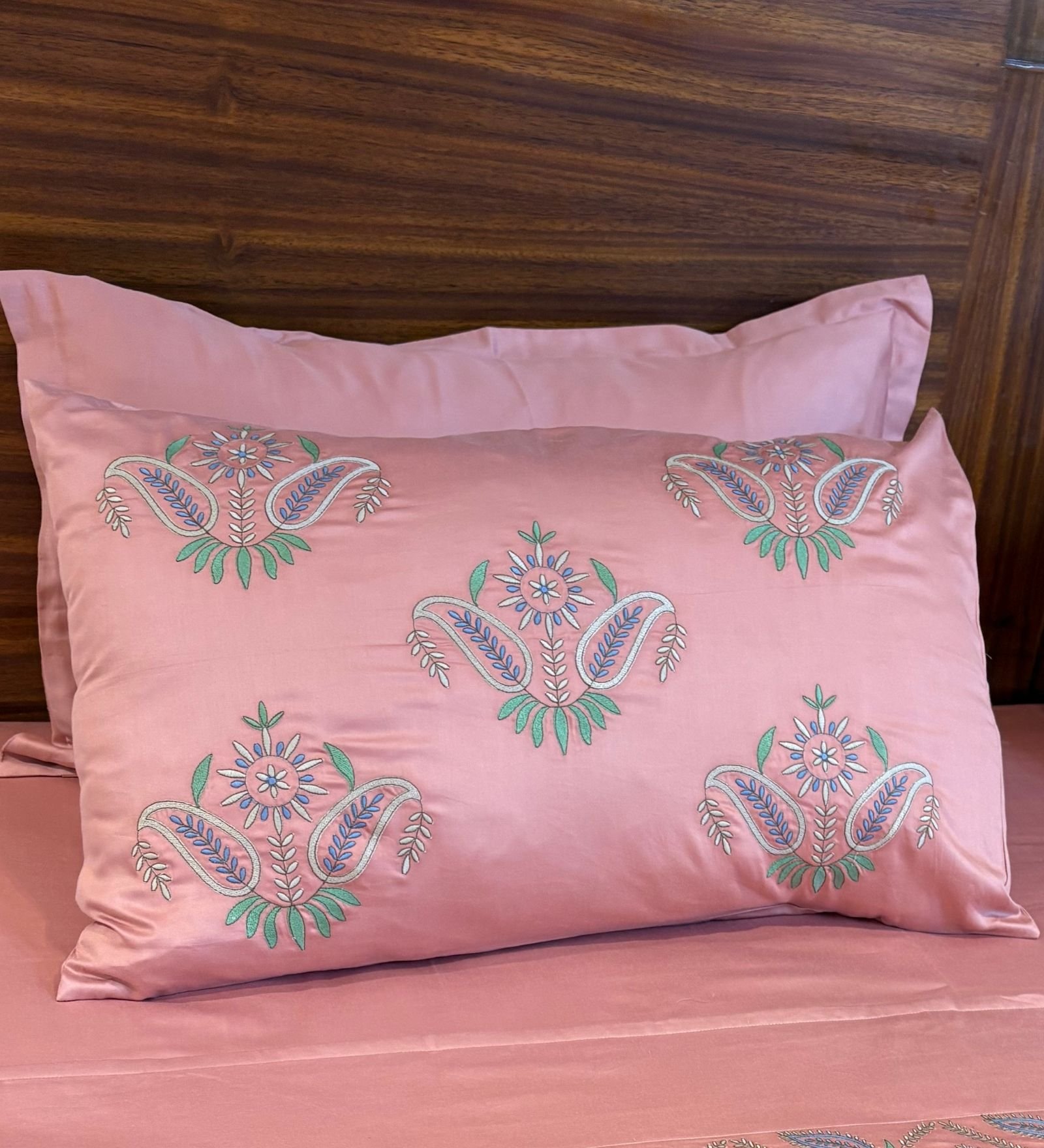 Bring effortless luxury to your bedroom with our solid 100% cotton 400 TC sateen bedsheets, smooth, breathable, and subtly lustrous. Available in a serene palette of colours, these sheets create the perfect canvas for a beautifully layered bed. You can pair them with our matching embroidered bedcovers, designed in the same beautiful hues, they add a touch of texture and timeless detail. On cooler nights, layer with our lightweight printed comforters in complementary tones for added comfort and visual depth.