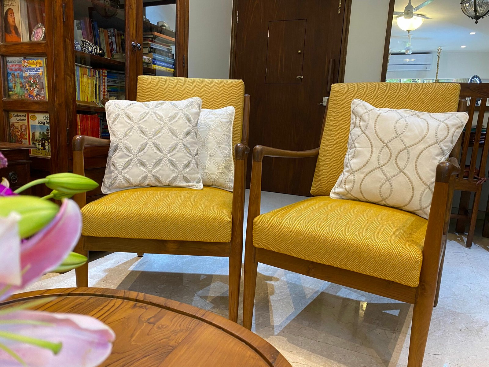 Another thing to consider when styling your pillows is how you might introduce texture to the arrangement. Using natural fabrics or patterned and embroidered materials paired with more neutral fabrics creates a pleasing contrast and helps to bring life into a room.