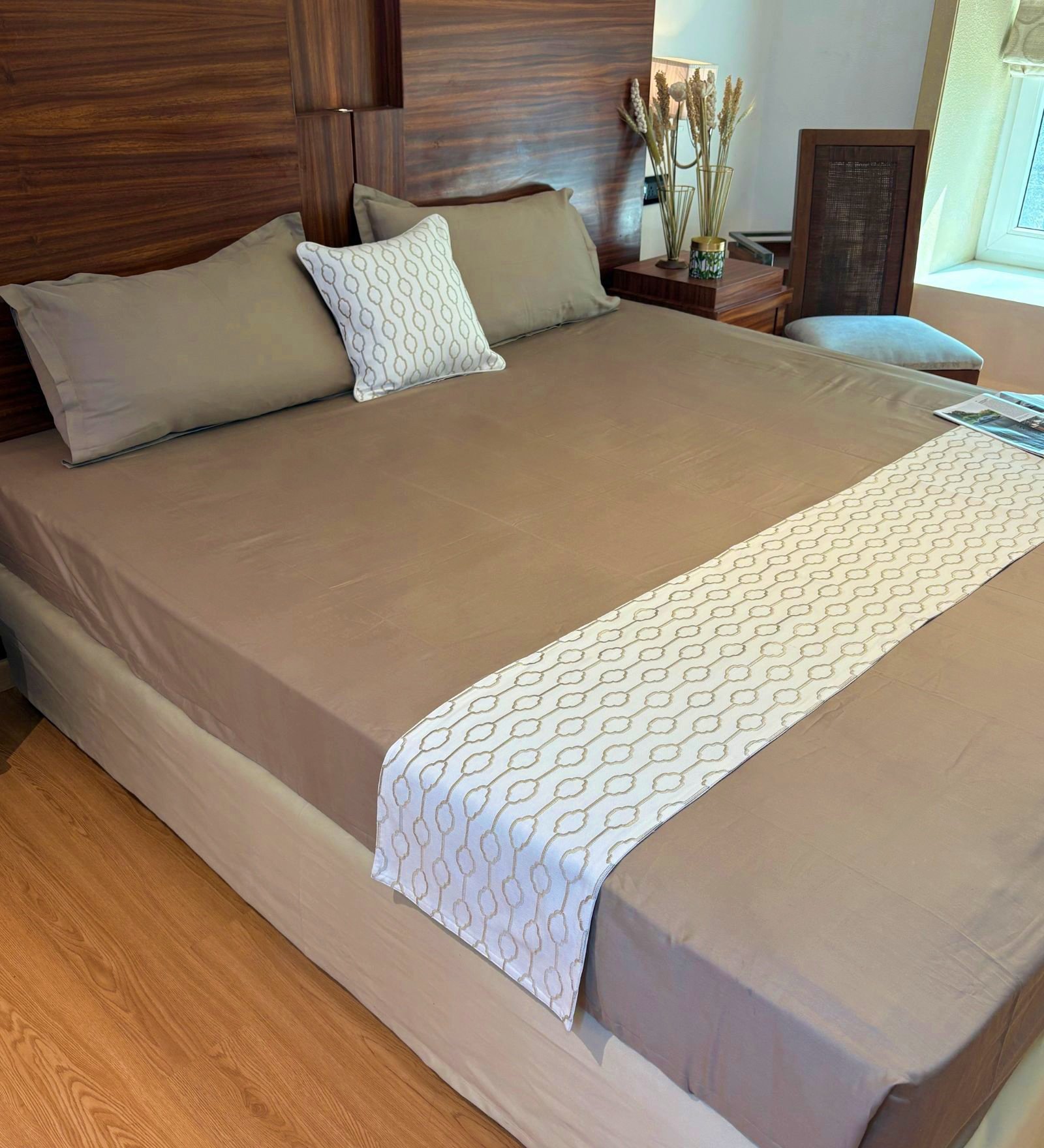 An embroidered bed runner by Bells & Whistles is more than just a decorative accent— it’s a touch of artisanal elegance that brings charm and character to your bedroom. Thoughtfully designed and beautifully embroidered, it’s typically styled at the foot of the bed to add colour, texture, and an elegant touch. Pair it with coordinated cushions or throws to complete the look. Whether you’re going for subtle sophistication or vibrant flair, our bed runners are a simple way to refresh your bedroom with attractive decor for your beautiful home.
