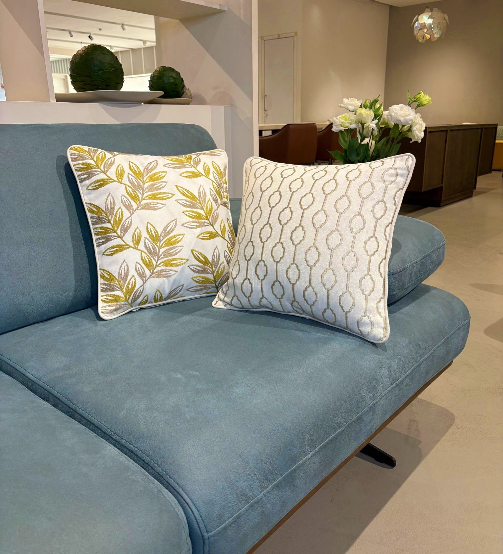 When styling your cushions this season, consider adding texture to elevate the look. Pair natural fabrics or intricately patterned and embroidered cushion covers with neutral tones to create a soft, balanced contrast that instantly brings life to your space. Start with our signature powdered and neutral Season of Light collection. Layer in our embroidered cushion covers—featuring Floral and Lattice designs—for a relaxed, inviting summer breeze vibe.