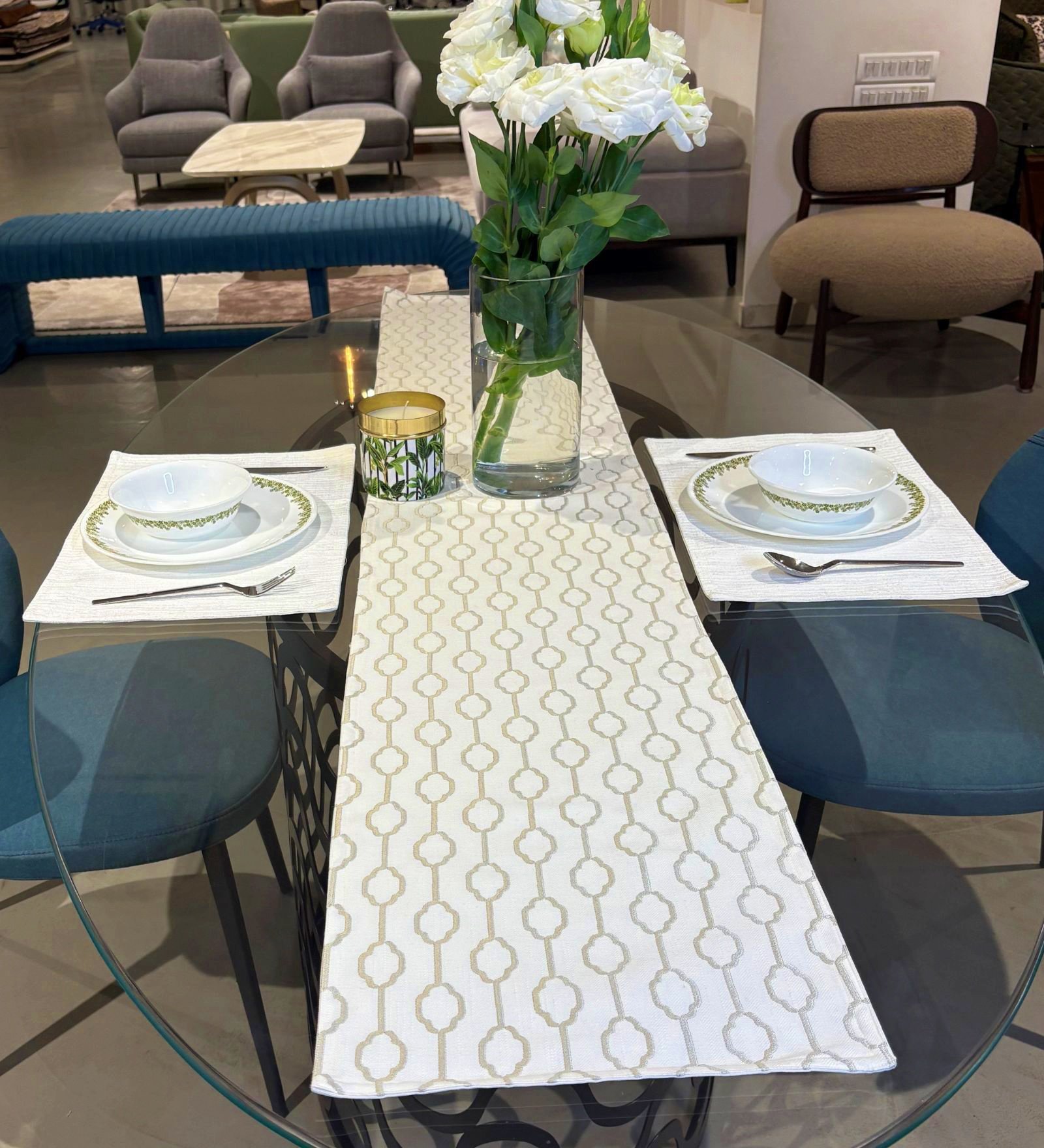 Style your tables this season with elegant layers. Our neutral-toned Season of Light table runners, elevates your dining space with embroidered Floral and Lattice patterns. Natural fabrics and detailed embroidery pair beautifully with understated palettes, creating a setting that’s graceful, warm & welcoming. Whether it’s a casual brunch or an evening soiree, these layered accents add an easy summer-ready charm. Transform everyday dining into a visual treat with textured table runners that blend craftsmanship with a homely elegance.