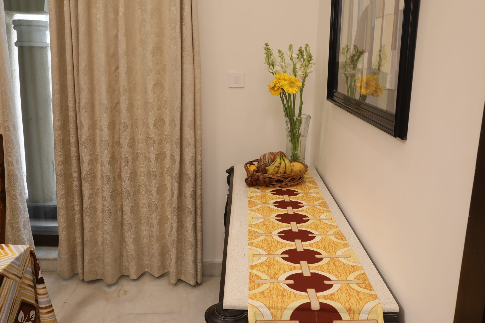 We have worked out the right table runner dimensions for your dining table. Our table runners come with a width of 13”. This will leave enough space on either side of the table so that your place settings don’t overlap with your runner.