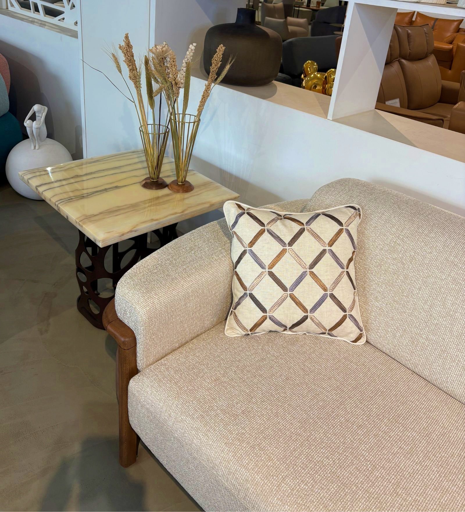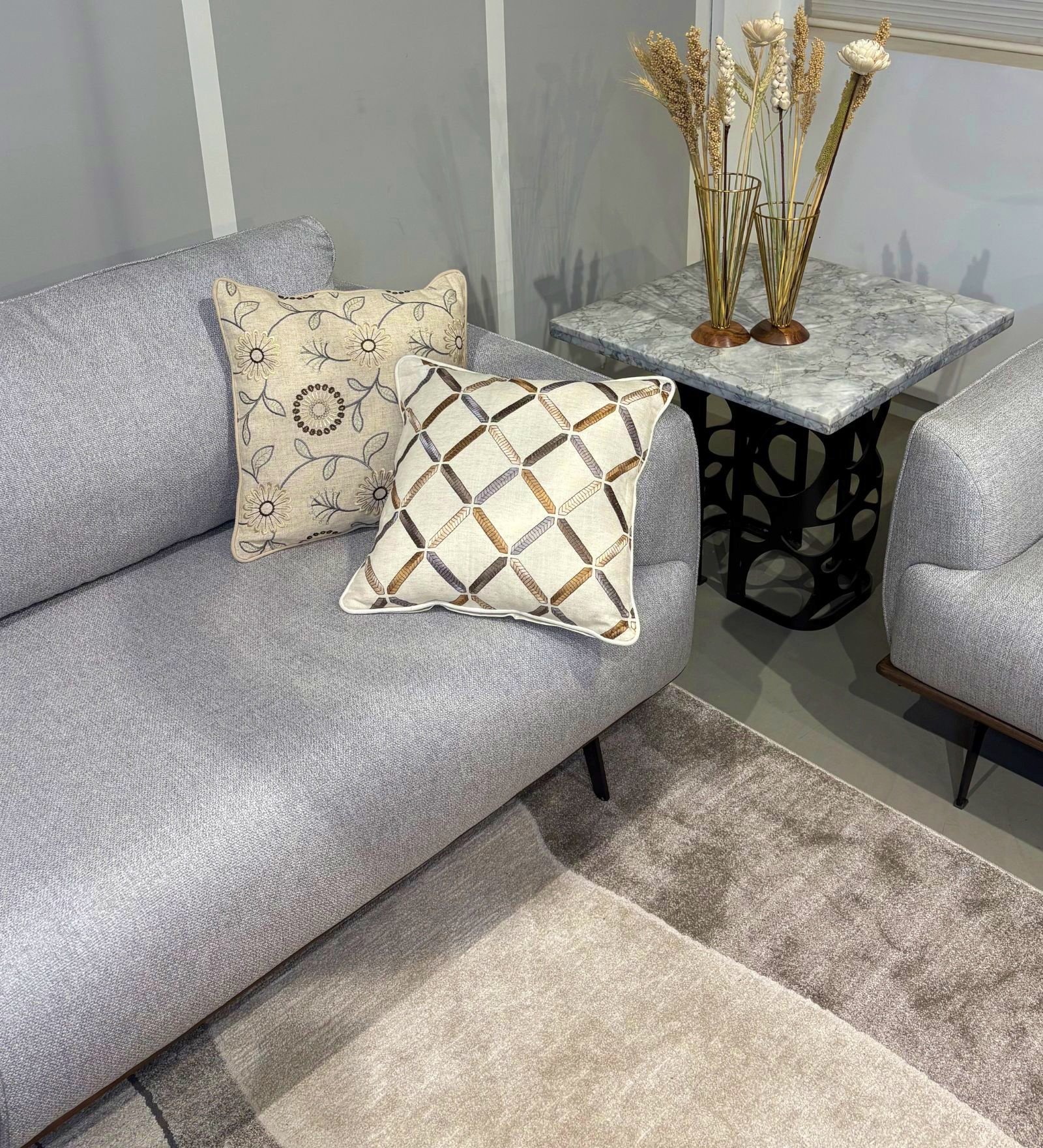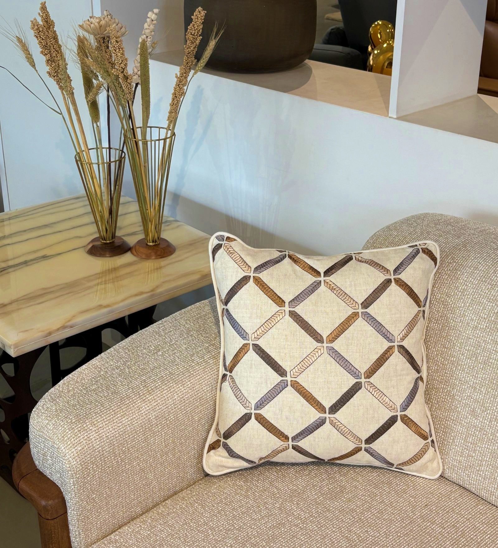 When styling your cushions this season, consider adding texture to elevate the look. Pair natural fabrics or intricately patterned and embroidered cushion covers with neutral tones to create a soft, balanced contrast that instantly brings life to your space. Start with our signature powdered and neutral Season of Light collection. Layer in our embroidered cushion covers—featuring Floral and Lattice designs—for a relaxed, inviting summer breeze vibe.
