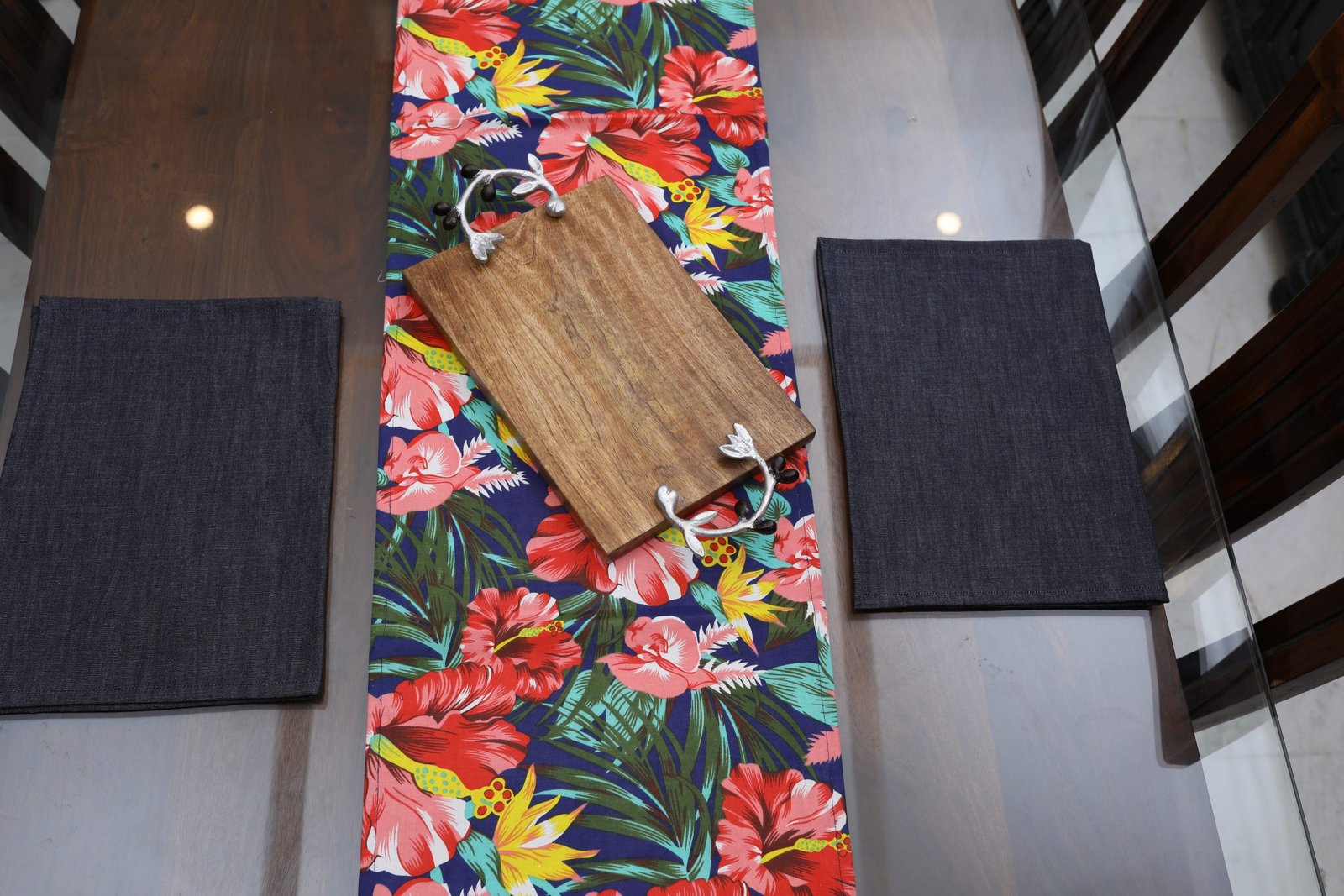 We have worked out the right table runner dimensions for your dining table. Our table runners come with a width of 13”. This will leave enough space on either side of the table so that your place settings don’t overlap with your runner.