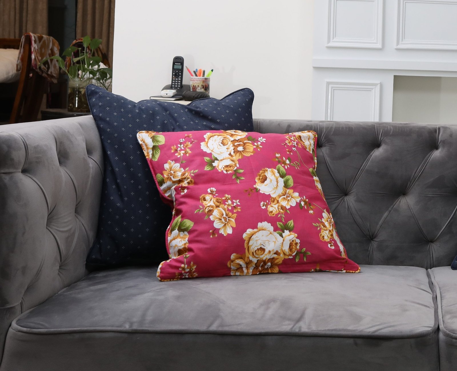 ‘Feel-good shades like rose pink, cherry, mustard yellow, midnight blue and grass green will all help to lift the mood. Our Cushion Cover collection oozes hope for sunny summer days and new beginnings and its coordinating colour palette means you can layer different patterns together.