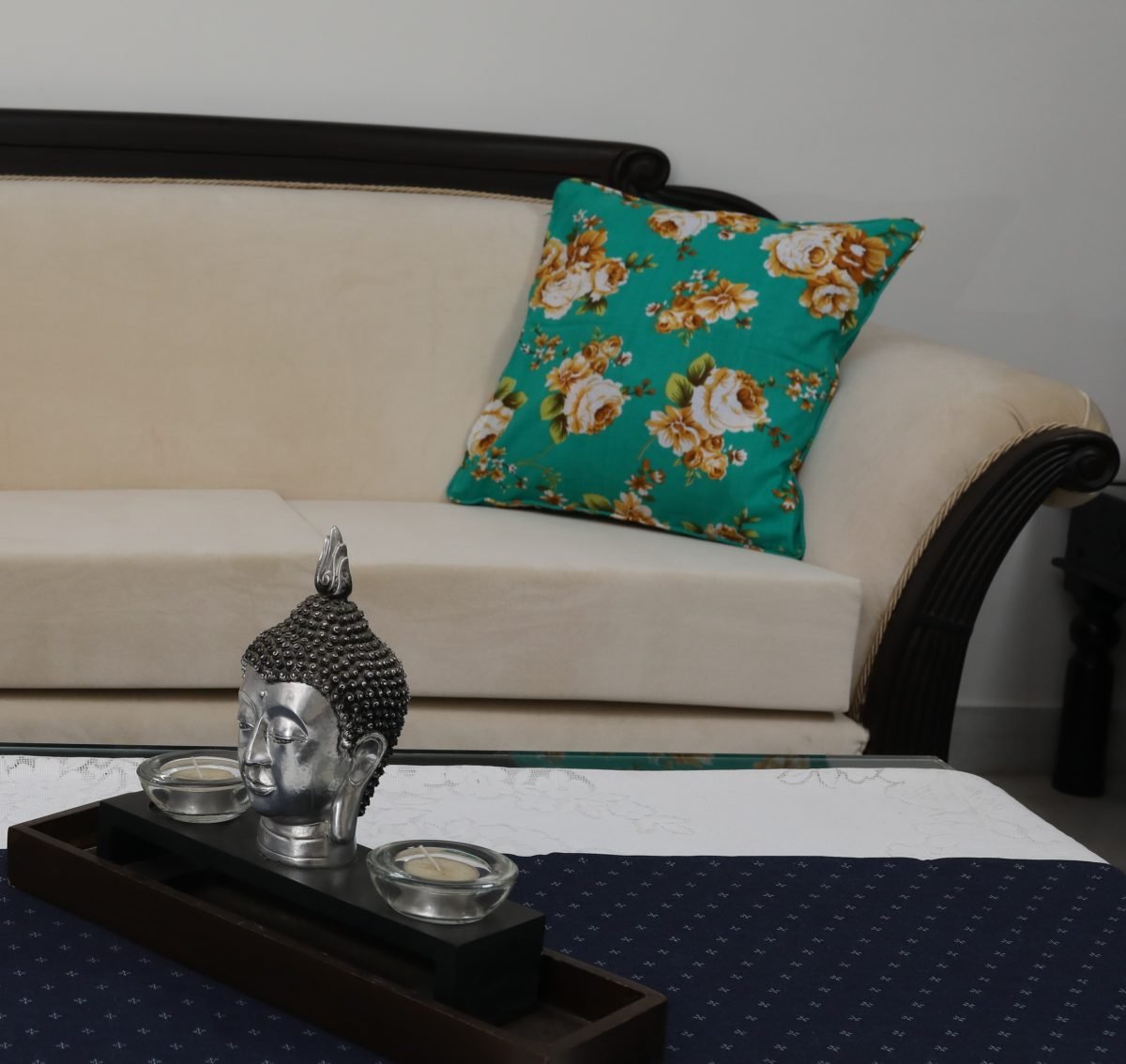 We have worked out the right table runner dimensions for your dining table. Our table runners come with a width of 13”. This will leave enough space on either side of the table so that your place settings don’t overlap with your runner.