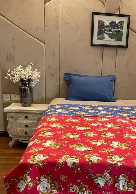 Our dohars, made by stitching two cotton sheets together, make a sleek bedlinen. It is ideal for when the cool night winds blow and you need a little more than a cotton sheet to keep you warm but not something as padded as a quilt. It also makes an ideal bedding throughout the year when you have the A.C turned on and the temperature is a cool 21 to 24 degrees Celsius. Playing with patterns is one of the most enjoyable part of a bedroom design scheme, you can pick out colors from our Dohar patterns when choosing your bedding and other decorative accessories. Our reversible Dohars can be folded back if you don’t want to smoothen it beneath your pillows. The pretty design on the underside complements the upper side and allows for more visual layering of your bedlinen.