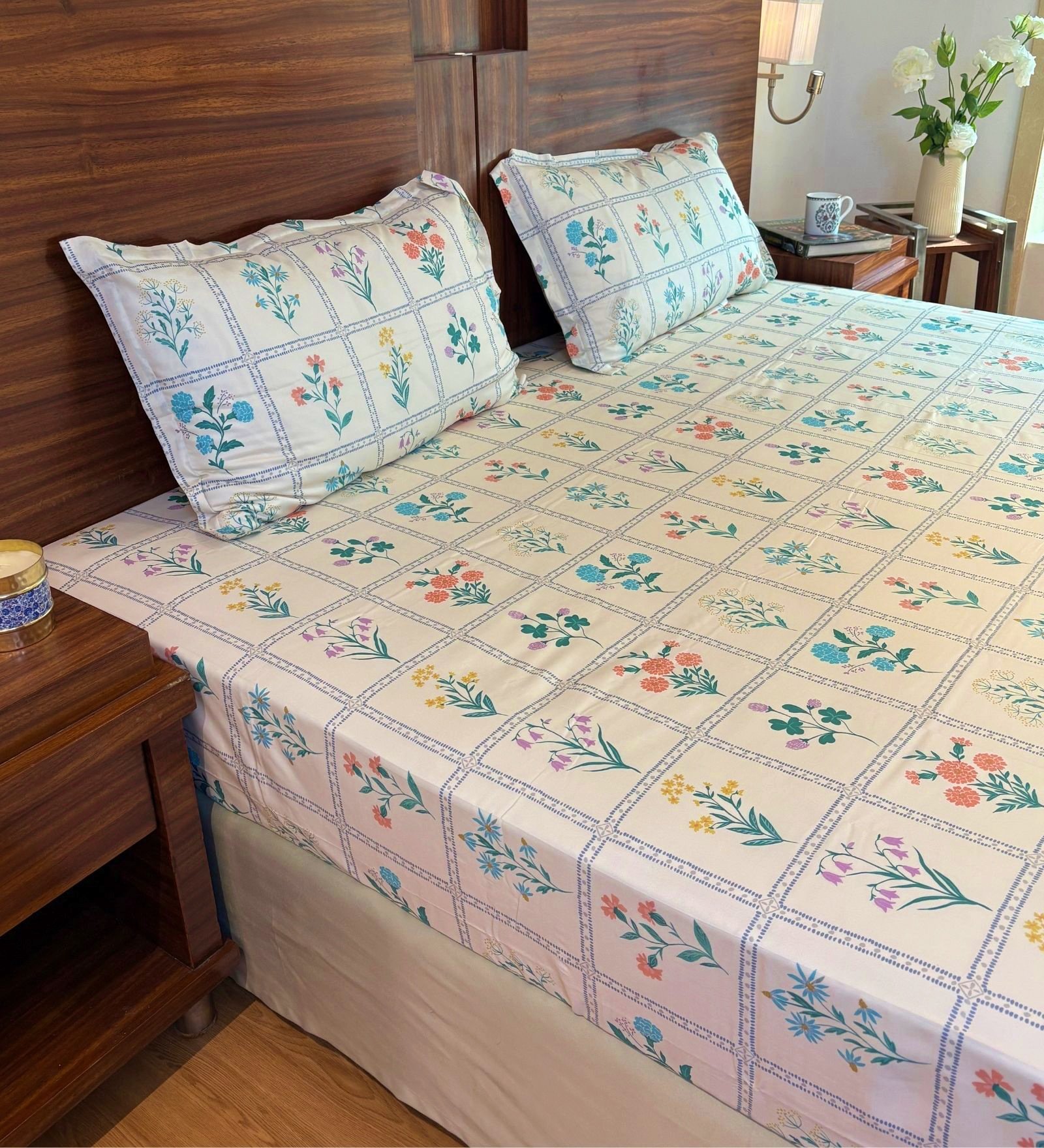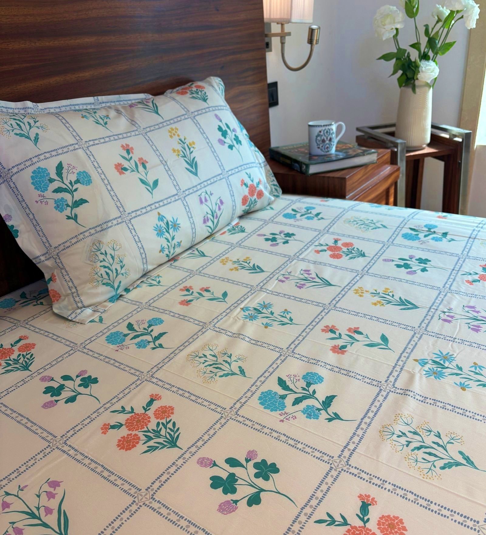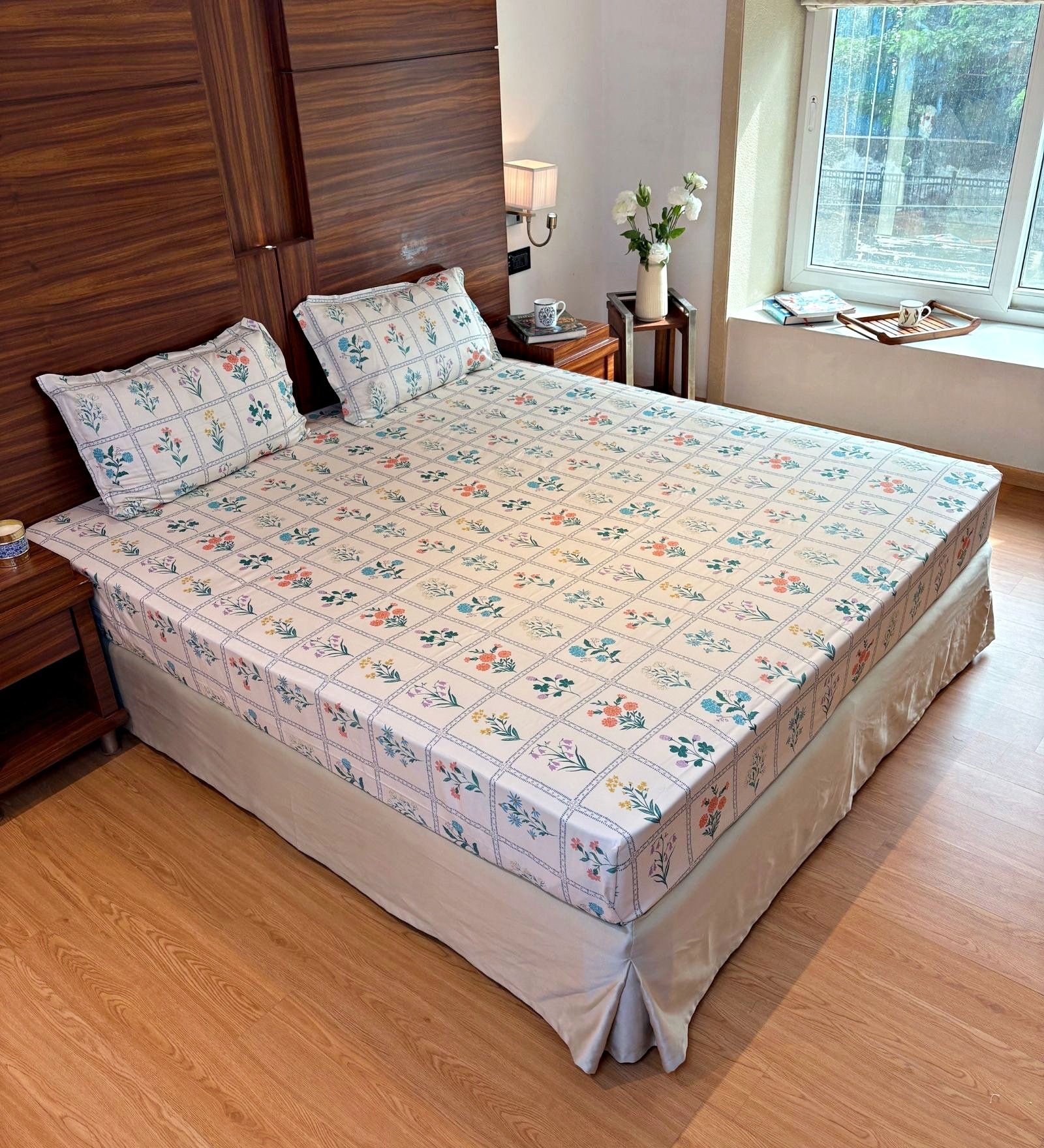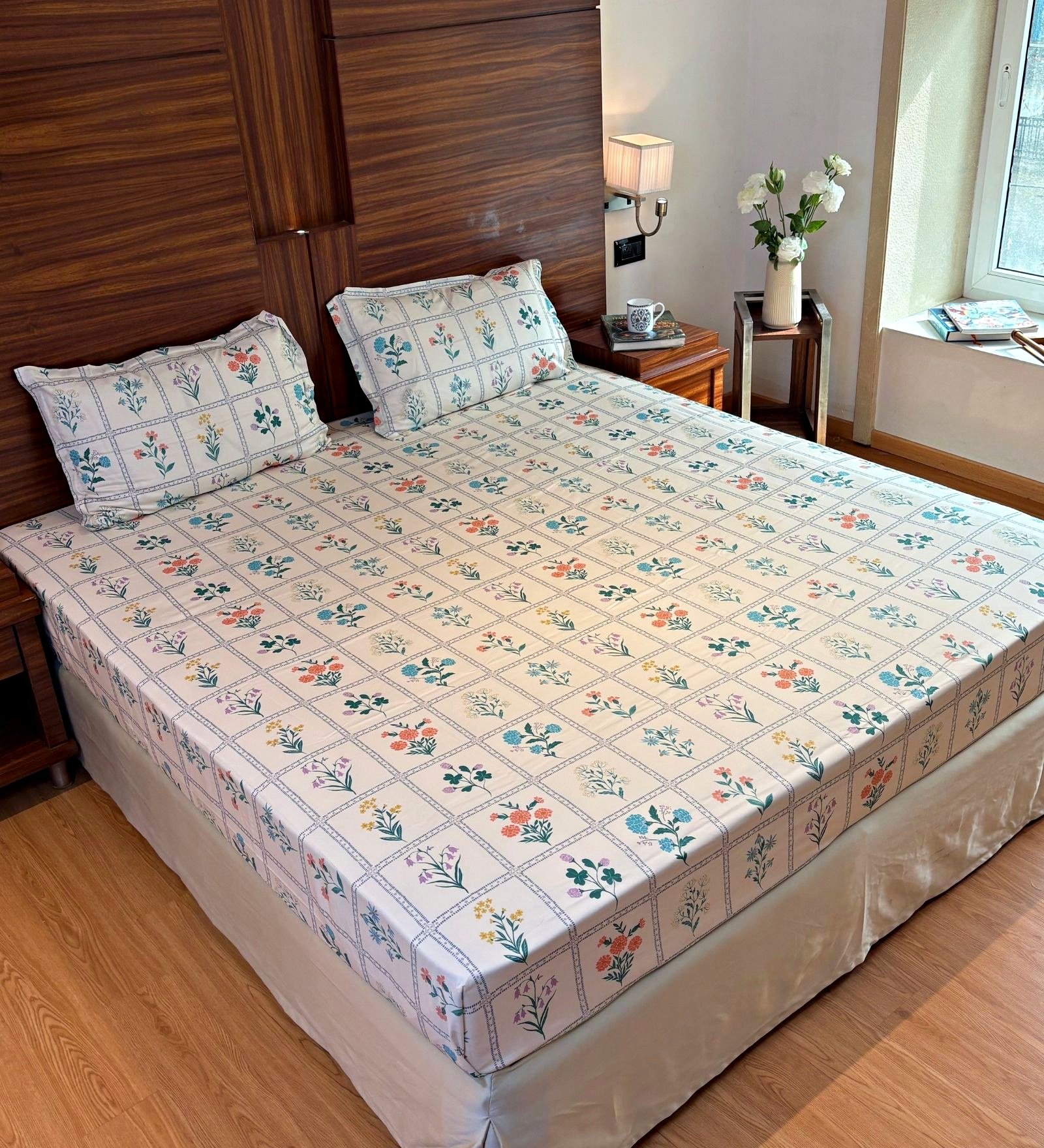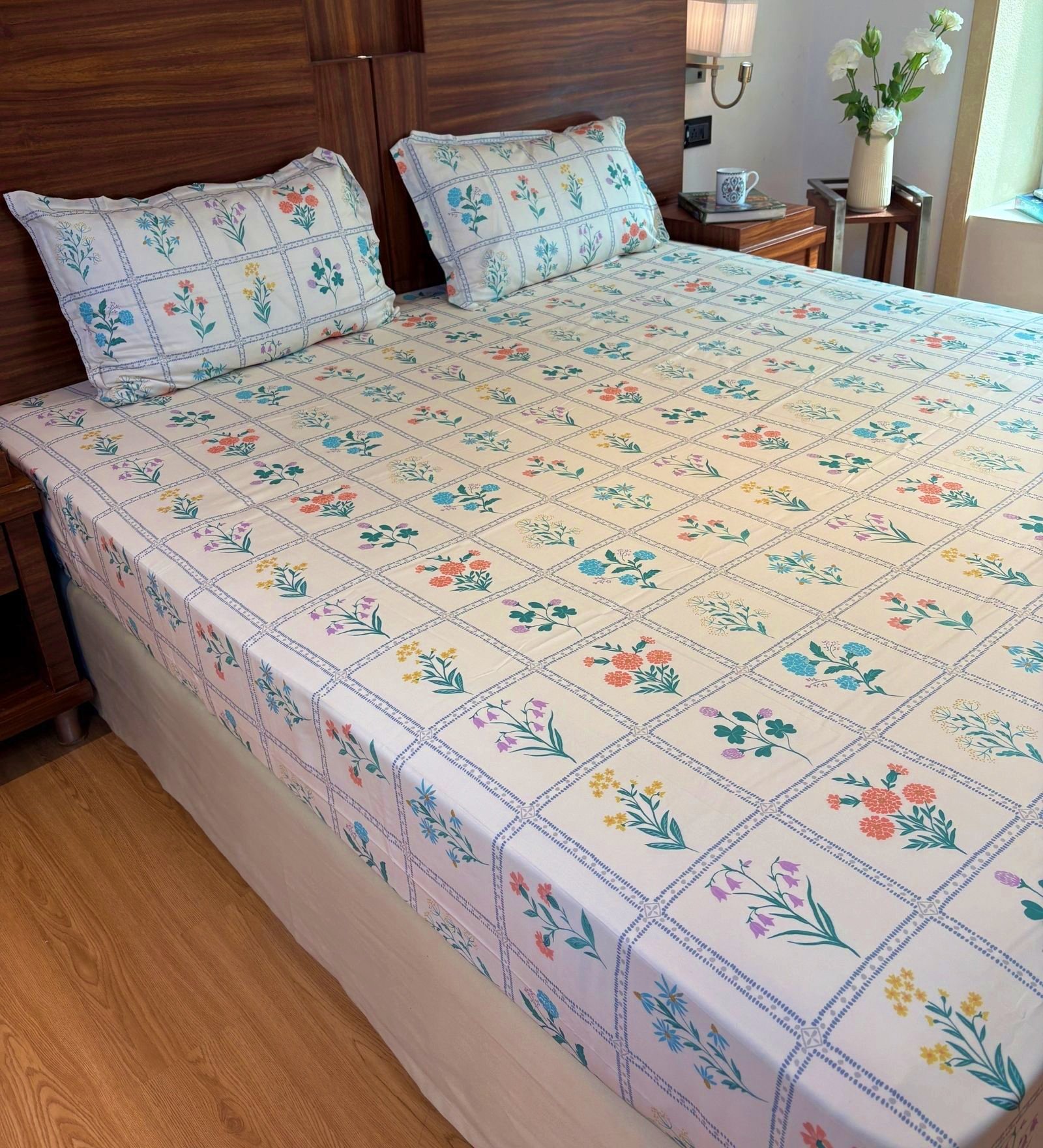 Bring home the understated elegance of nature with our Printed bedsheet set. Designed with a delicate all-over floral pattern in soft tones, this set adds warmth and subtle charm to any bedroom. The intricate print evokes a serene, garden-like feel, perfect for creating a calming retreat. Crafted from high-quality 600 TC cotton, it offers both comfort and durability. ensuring restful sleep night after night. Ideal for those who appreciate minimalism with a touch of floral grace, this bedsheet blends seamlessly into classic, contemporary. or nature-inspired interiors.