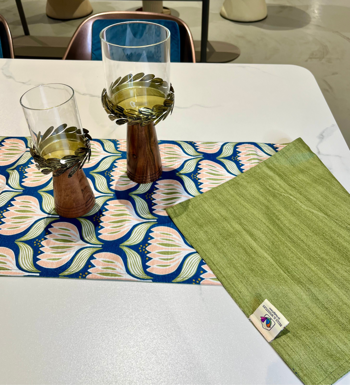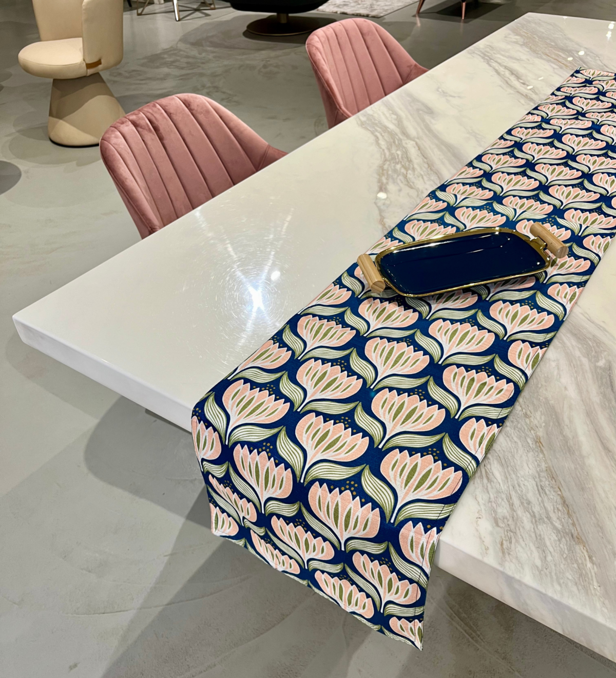 Our festive lotus printed table runners capture the timeless beauty and symbolism of the lotus flower, transforming your dining space into a celebration of elegance. The intricate lotus patterns evoke freshness, renewal, and festive joy, making each runner a perfect focal point for your tablescape. Designed to bring warmth and sophistication, these runners blend tradition with modernity, creating a vibrant, auspicious ambiance for gatherings. Elevate your festive tables with this blend of artful design and symbolism, ensuring your celebrations are both stylish and meaningful.