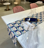 We have worked out the right table runner dimensions for your dining table. Our table runners come with a width of 13”. This will leave enough space on either side of the table so that your place settings don’t overlap with your runner.