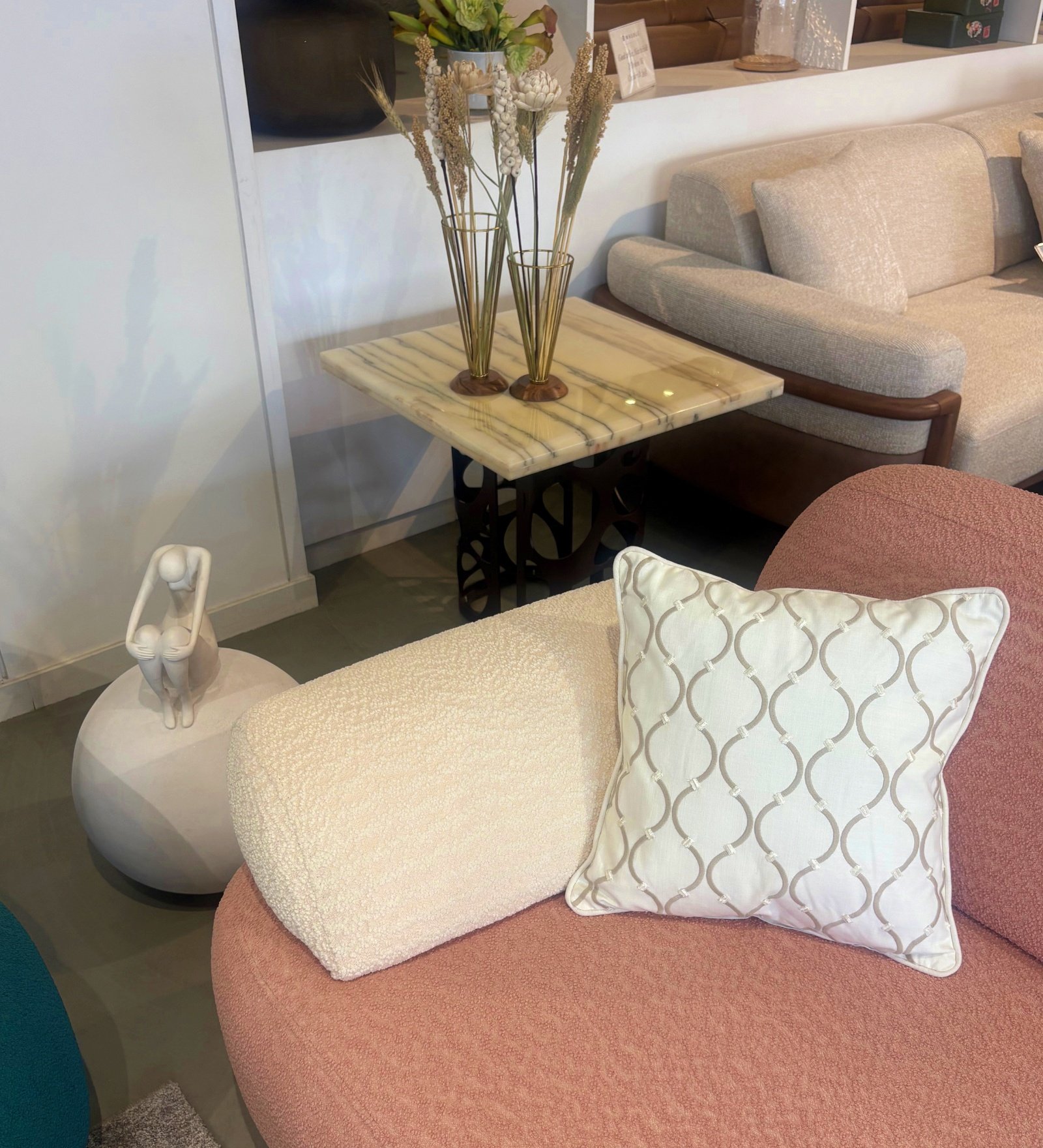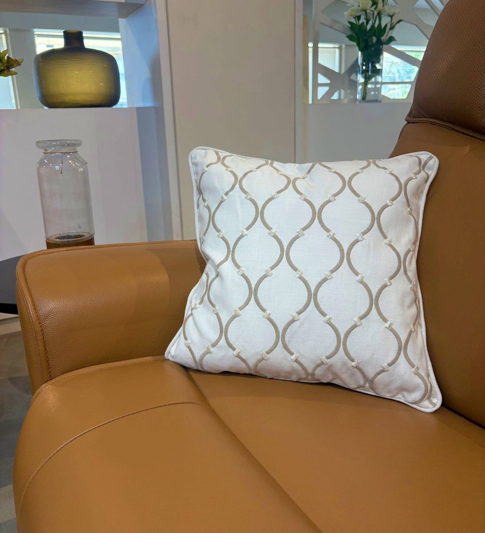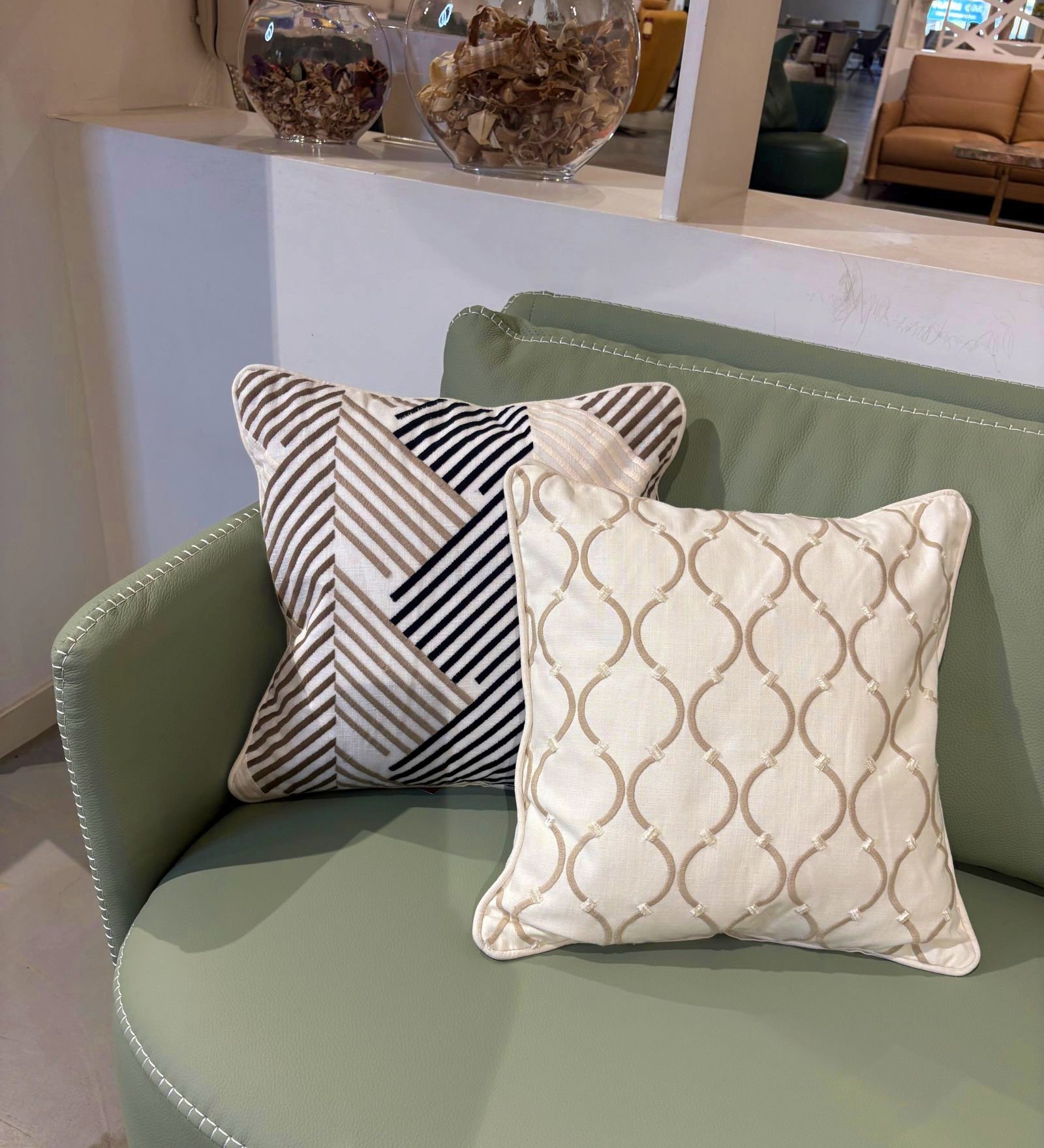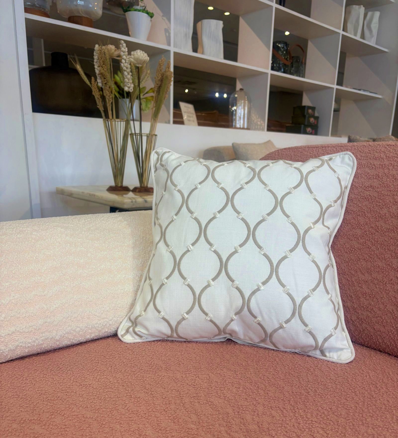 When styling your cushions this season, consider adding texture to elevate the look. Pair natural fabrics or intricately patterned and embroidered cushion covers with neutral tones to create a soft, balanced contrast that instantly brings life to your space. Start with our signature powdered and neutral Season of Light collection. Layer in our embroidered cushion covers—featuring Floral and Lattice designs—for a relaxed, inviting summer breeze vibe.