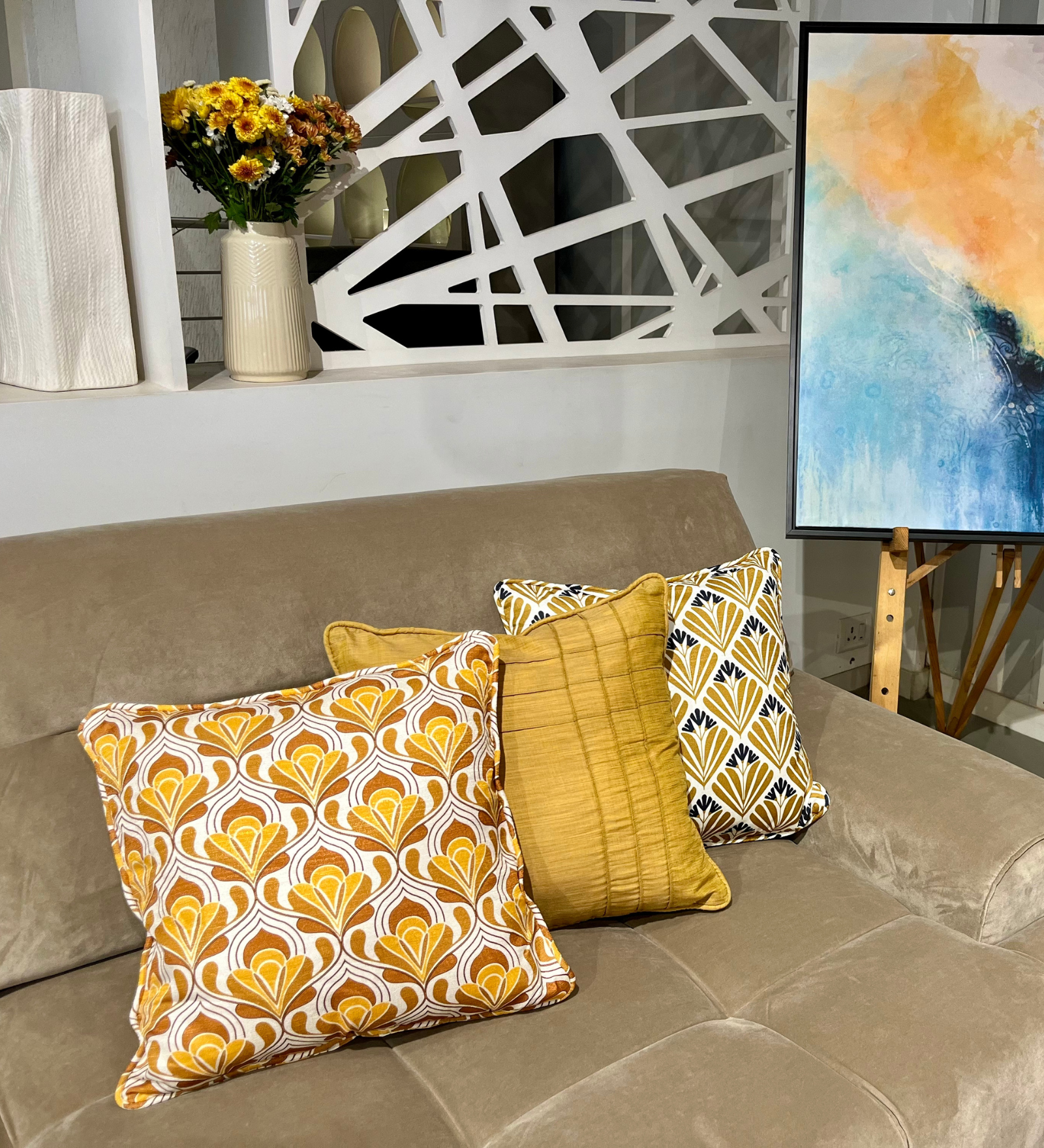 Our new festive range of Lotus cushion covers showcases the elegance and symbolism of the lotus flower. Featuring intricate lotus prints, these covers celebrate the flower’s spiritual significance, representing purity and renewal. Perfect for enhancing your home’s festive ambiance, the lotus designs blend traditional motifs with contemporary aesthetics, bringing a sense of calm and beauty to your decor. Each cover is thoughtfully crafted to embody the grace and auspiciousness of the lotus, making it a meaningful addition to your living space during the festive season