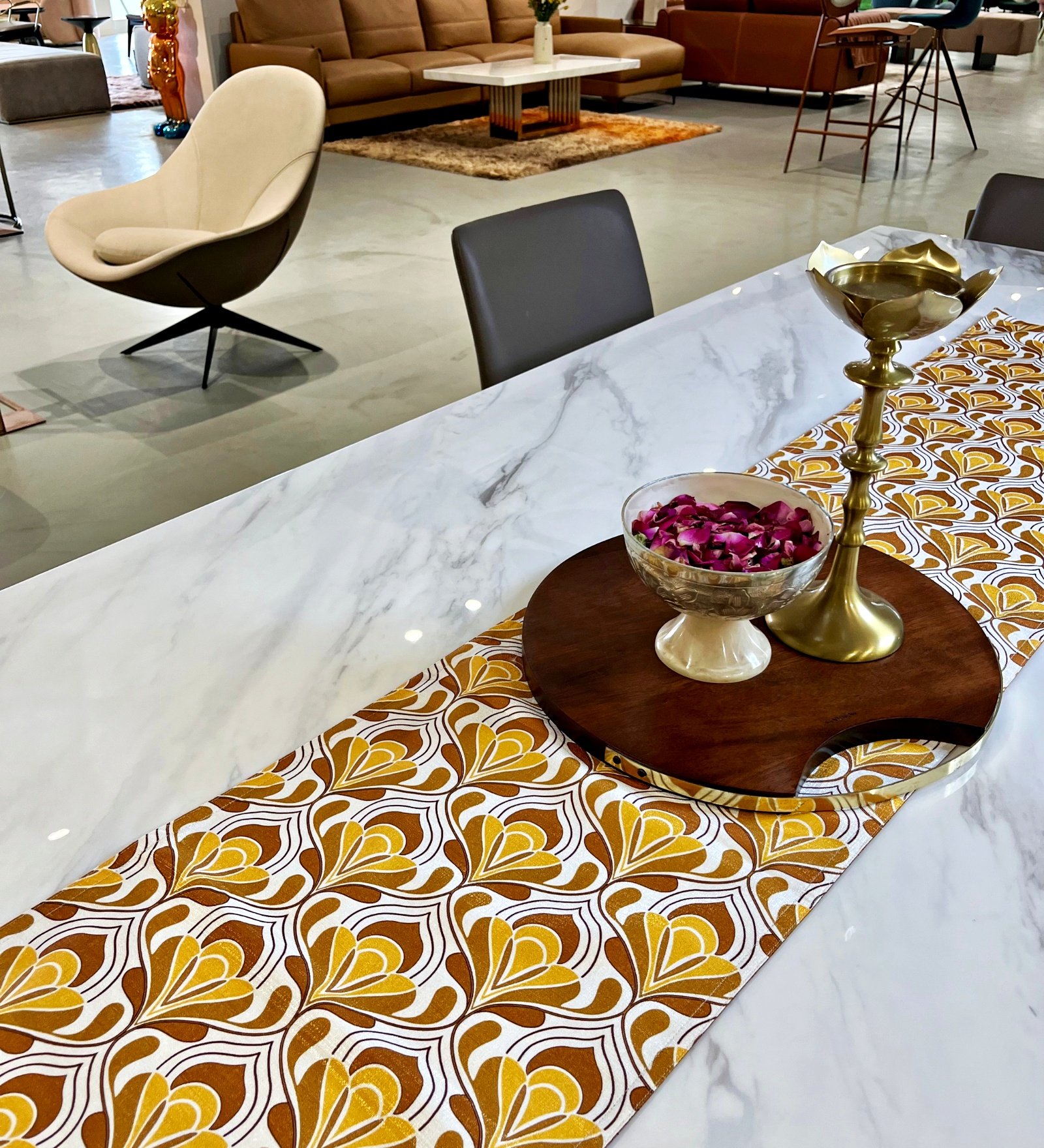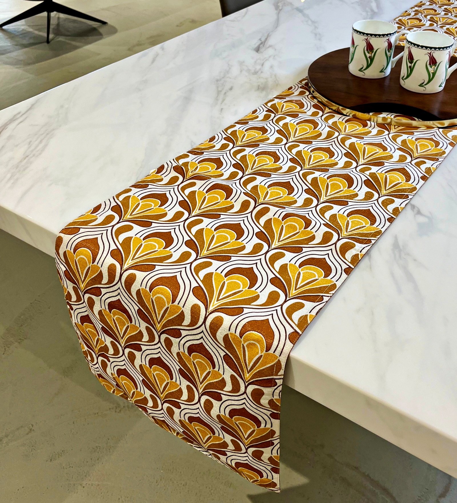 Our festive lotus printed table runners capture the timeless beauty and symbolism of the lotus flower, transforming your dining space into a celebration of elegance. The intricate lotus patterns evoke freshness, renewal, and festive joy, making each runner a perfect focal point for your tablescape. Designed to bring warmth and sophistication, these runners blend tradition with modernity, creating a vibrant, auspicious ambiance for gatherings. Elevate your festive tables with this blend of artful design and symbolism, ensuring your celebrations are both stylish and meaningful.
