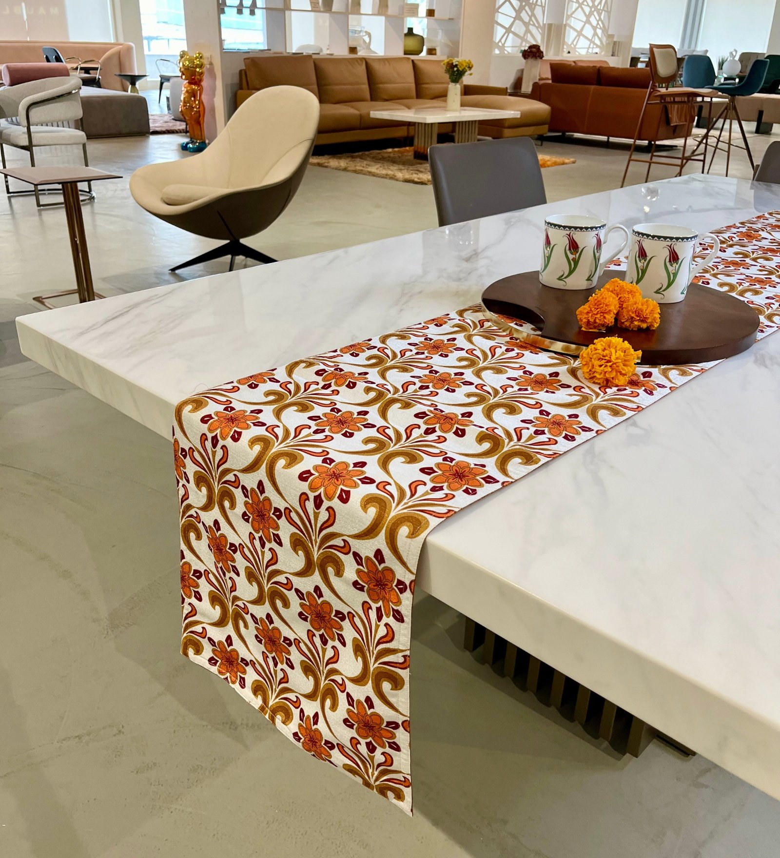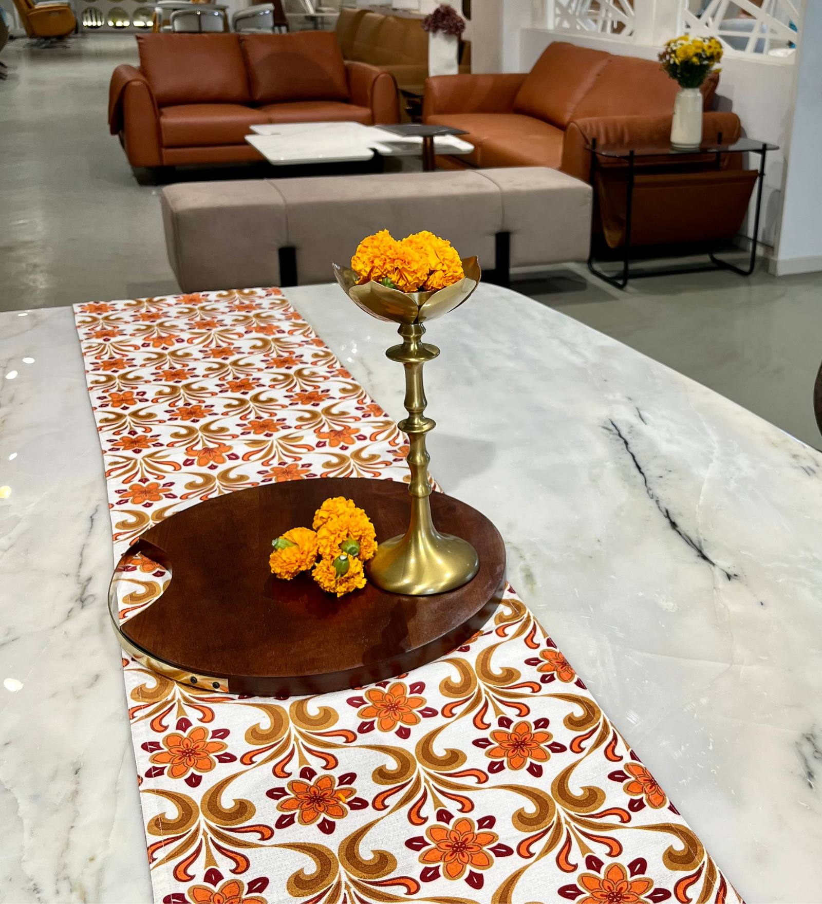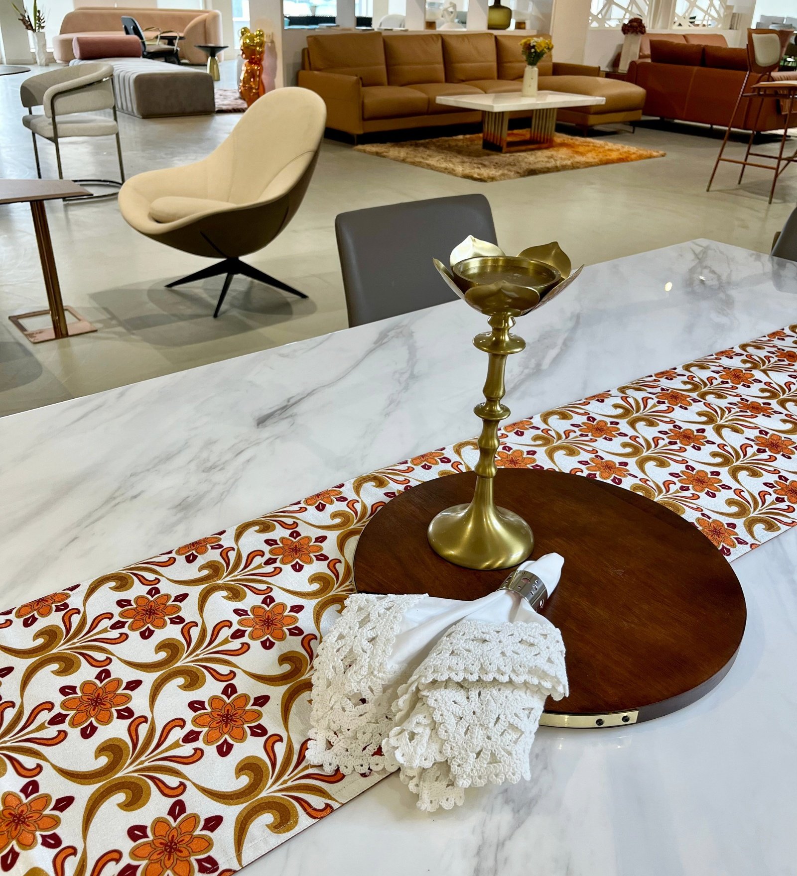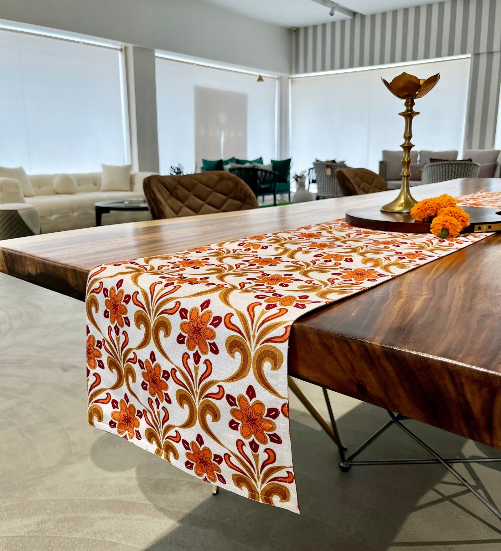Our festive lotus printed table runners capture the timeless beauty and symbolism of the lotus flower, transforming your dining space into a celebration of elegance. The intricate lotus patterns evoke freshness, renewal, and festive joy, making each runner a perfect focal point for your tablescape. Designed to bring warmth and sophistication, these runners blend tradition with modernity, creating a vibrant, auspicious ambiance for gatherings. Elevate your festive tables with this blend of artful design and symbolism, ensuring your celebrations are both stylish and meaningful.