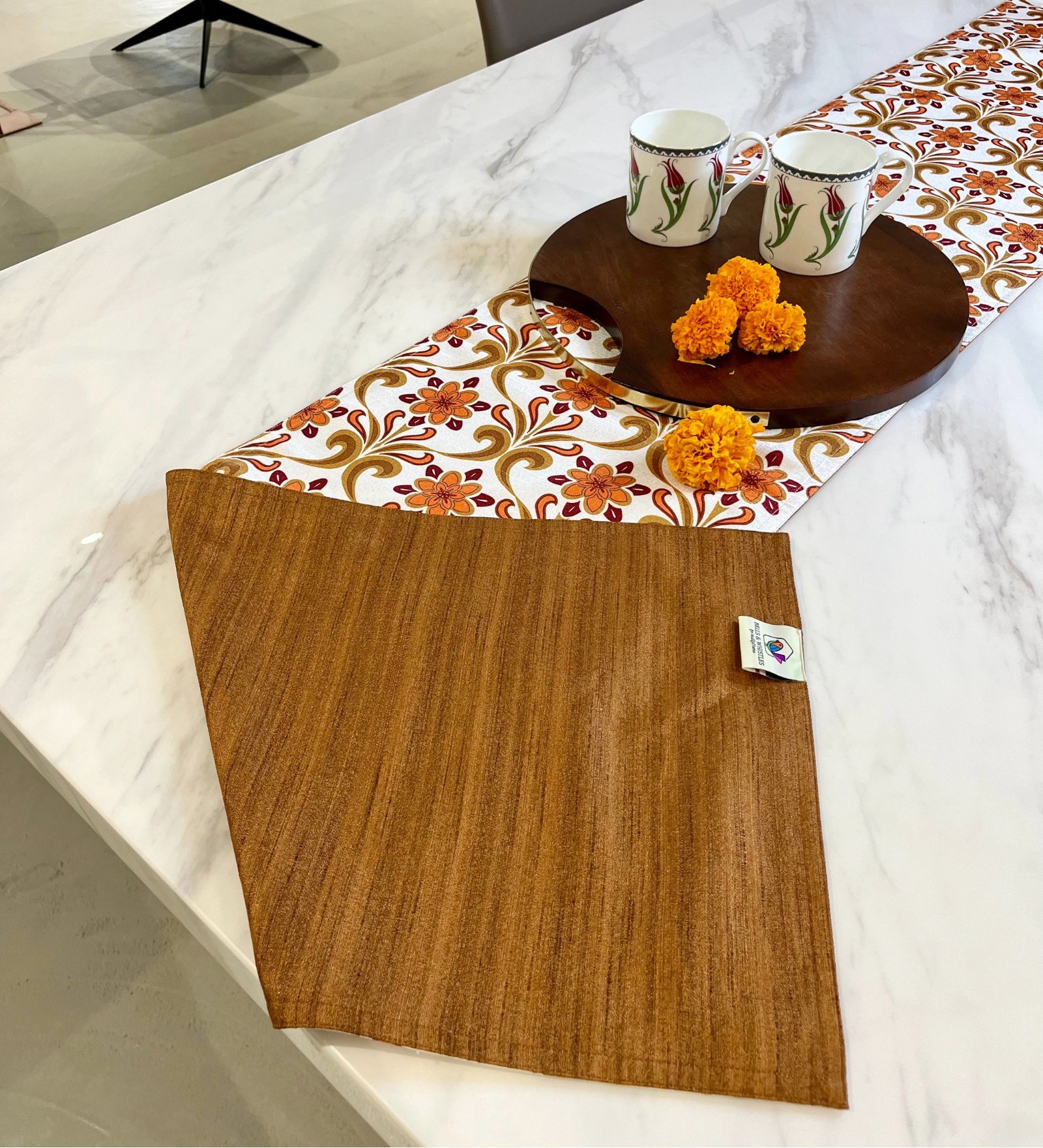 We have worked out the right table runner dimensions for your dining table. Our table runners come with a width of 13”. This will leave enough space on either side of the table so that your place settings don’t overlap with your runner.