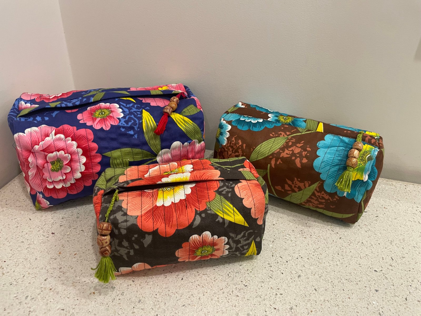 Every lady knows a trendy makeup bag is a fashion must. Select a makeup bag as the cosmetics you stash in them in this chic collection of bright & beautiful florals.