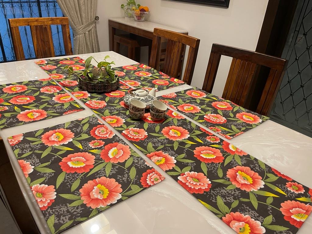 We have worked out the right table runner dimensions for your dining table. Our table runners come with a width of 13”. This will leave enough space on either side of the table so that your place settings don’t overlap with your runner.