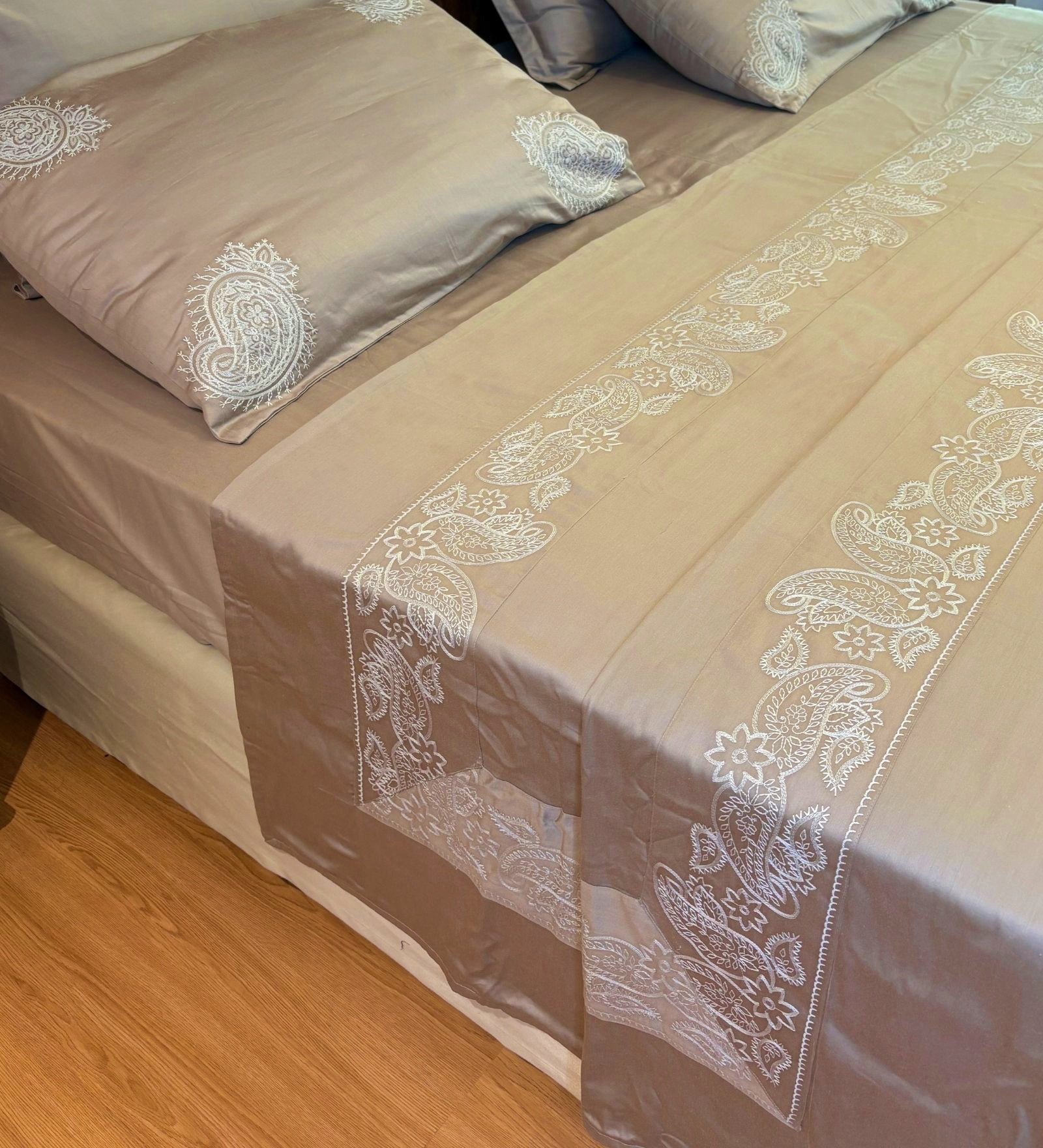 Sarena Mocha Cotton Sateen Embroidered Bedcover