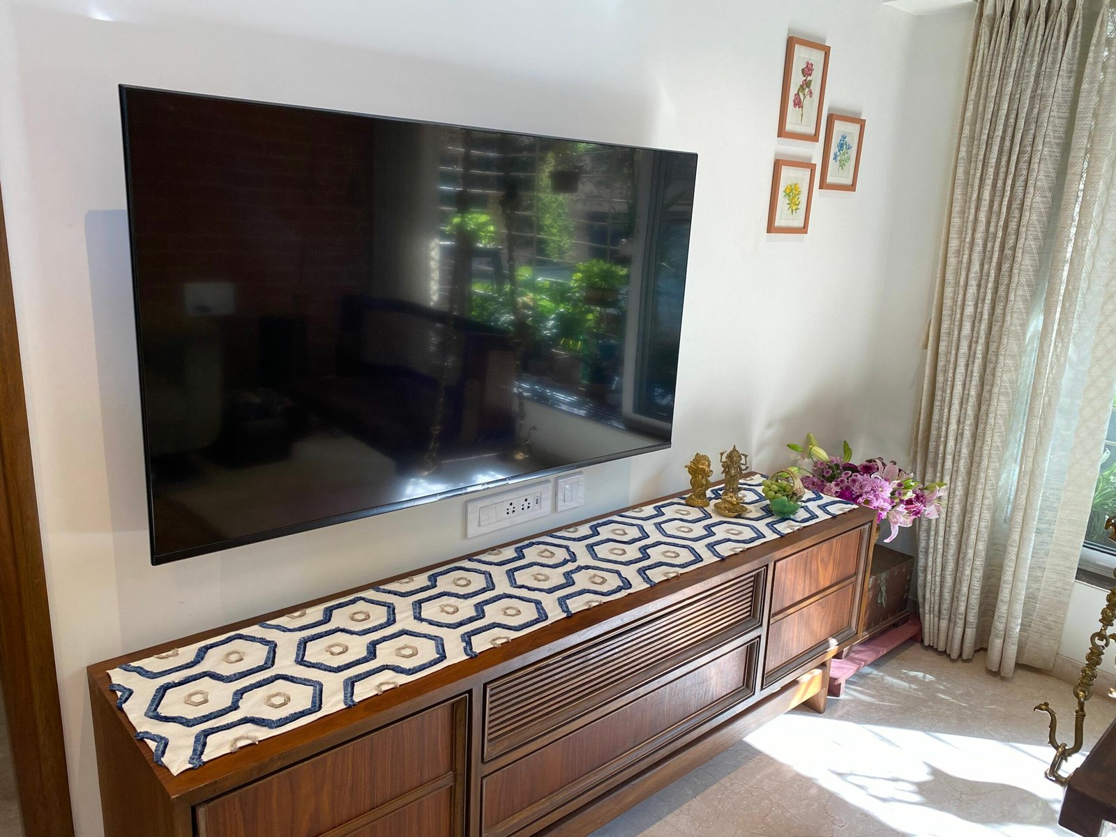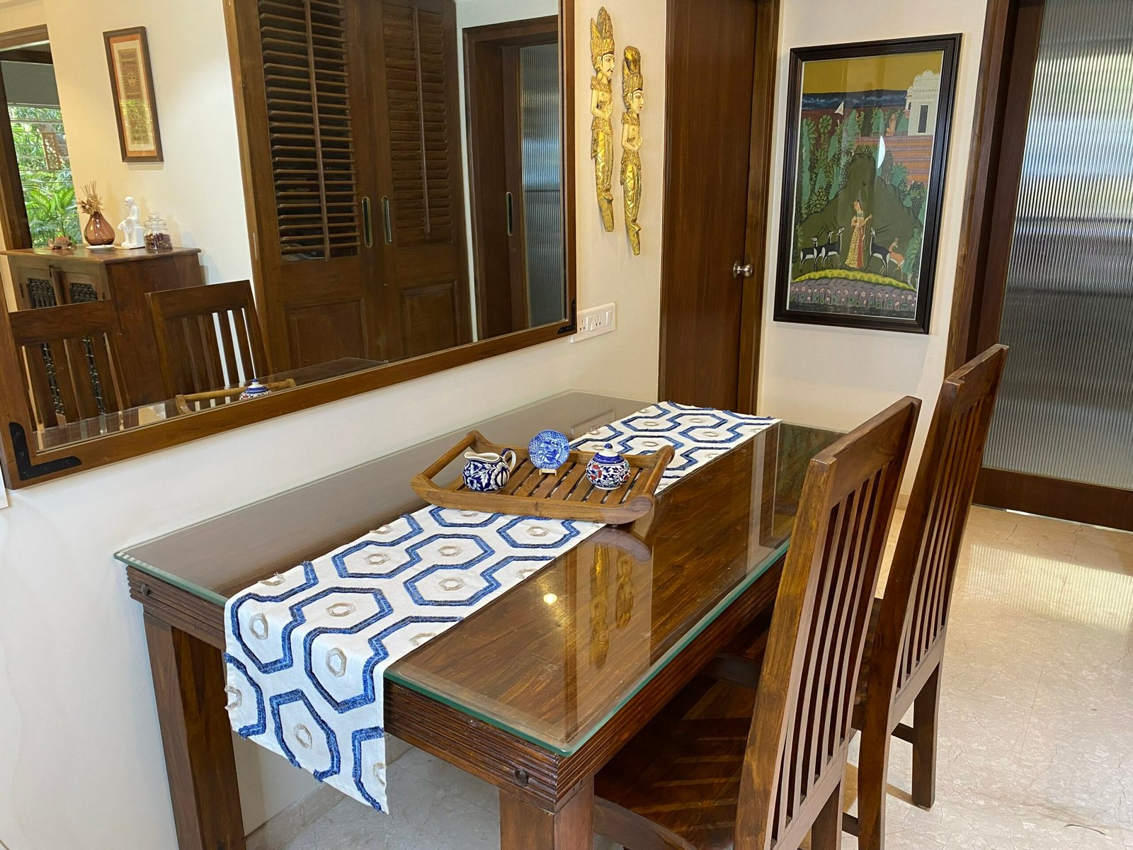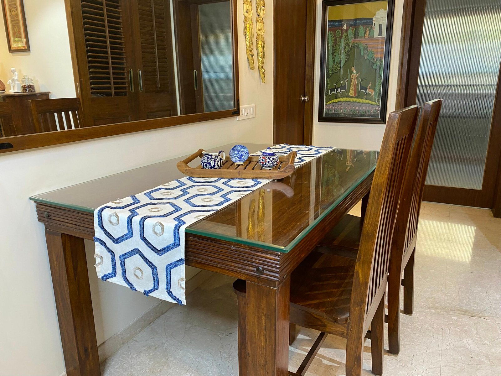 We have worked out the right table runner dimensions for your dining table. Our table runners come with a width of 13”. This will leave enough space on either side of the table so that your place settings don’t overlap with your runner.