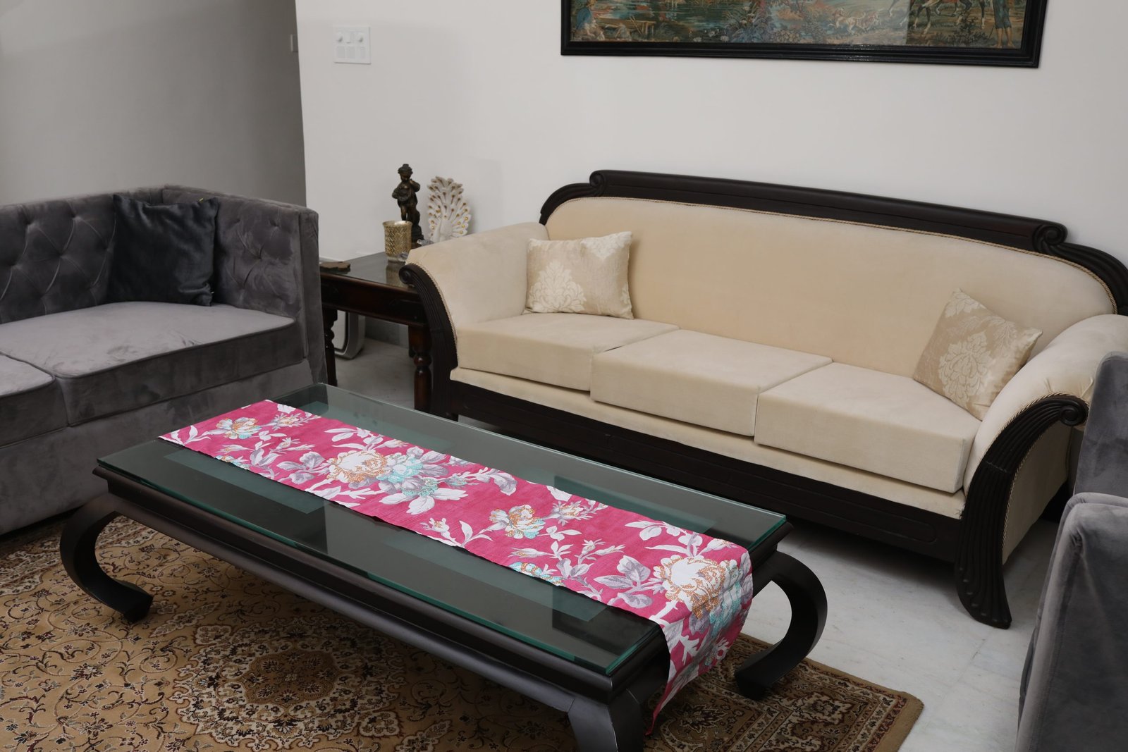 We have worked out the right table runner dimensions for your dining table. Our table runners come with a width of 13”. This will leave enough space on either side of the table so that your place settings don’t overlap with your runner.