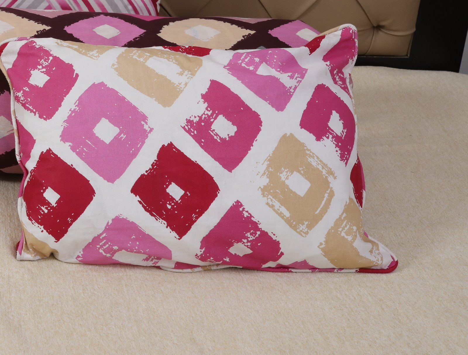 ‘Feel-good shades like rose pink, cherry, mustard yellow, midnight blue and grass green will all help to lift the mood. Our Cushion Cover collection oozes hope for sunny summer days and new beginnings and its coordinating colour palette means you can layer different patterns together.