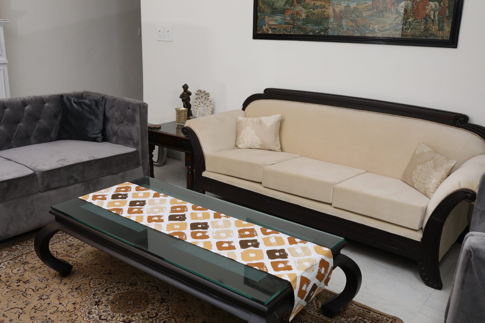 We have worked out the right table runner dimensions for your dining table. Our table runners come with a width of 13”. This will leave enough space on either side of the table so that your place settings don’t overlap with your runner.