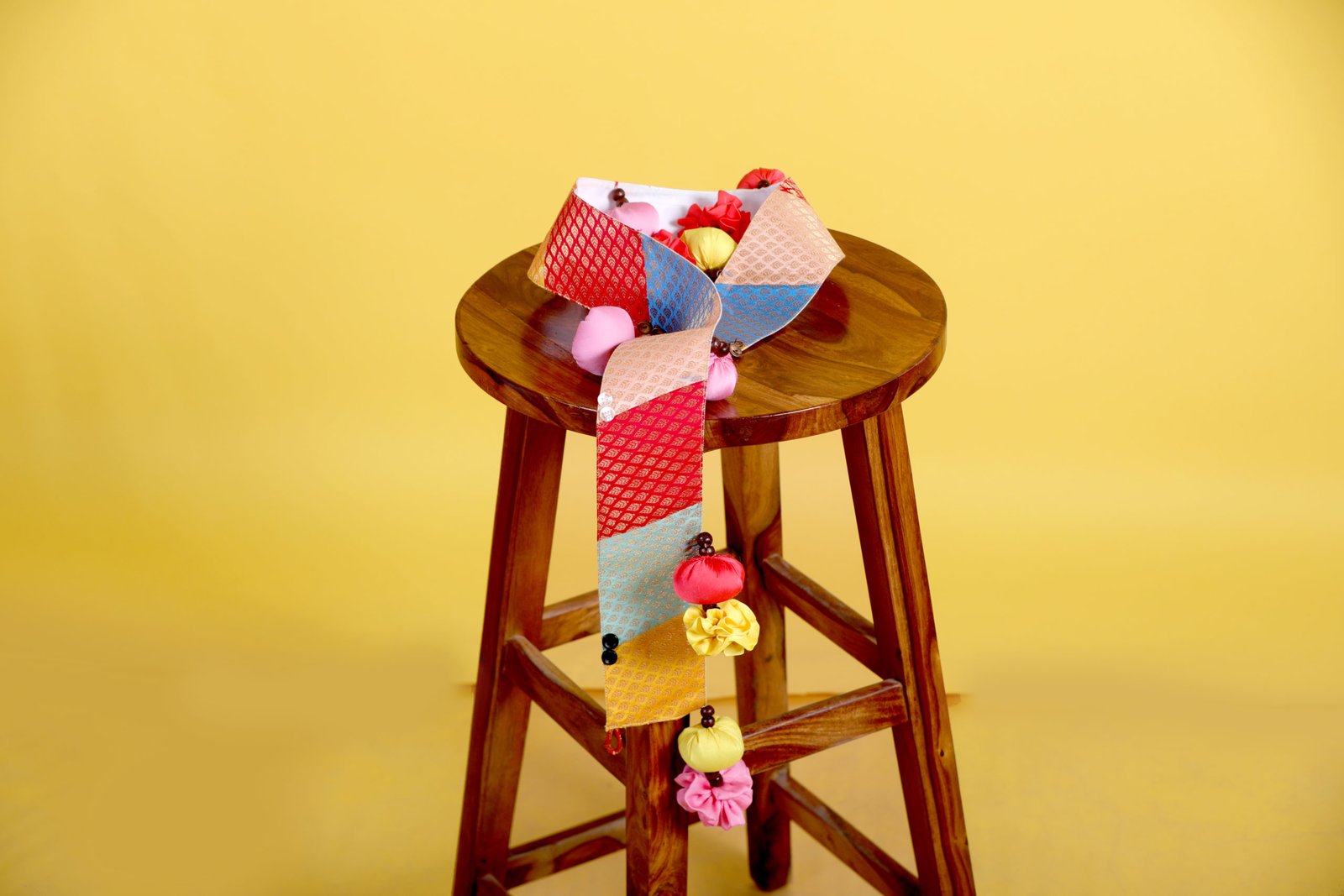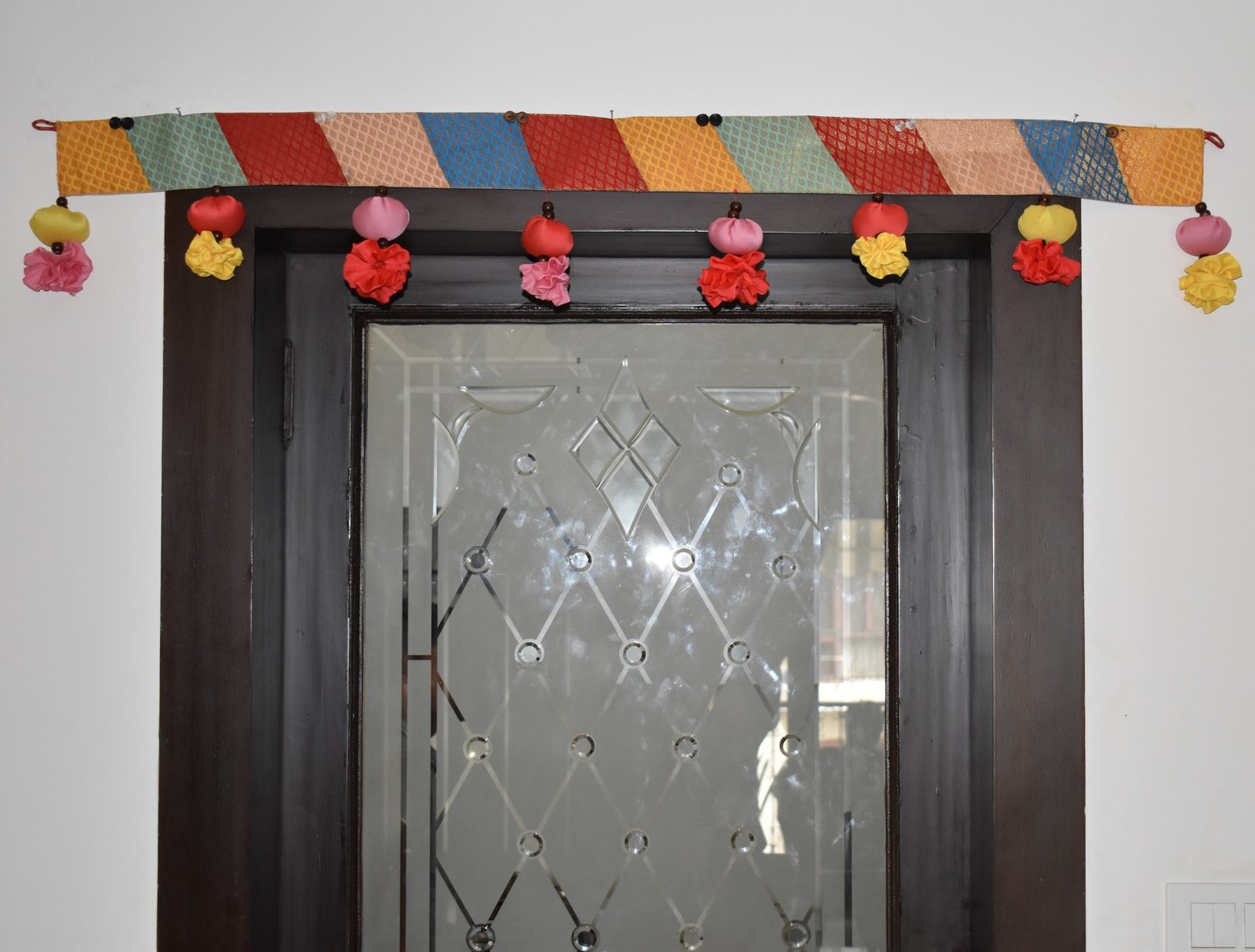 On the occasion of festivals and weddings, decorate the main entrance of your home with our beautiful fabric torans made with the philosophy of sustainability, and zero waste. These handmade torans are designed with flowers and leaves in vibrant colors of green, yellow, blue and red to attract the goddess of wealth.