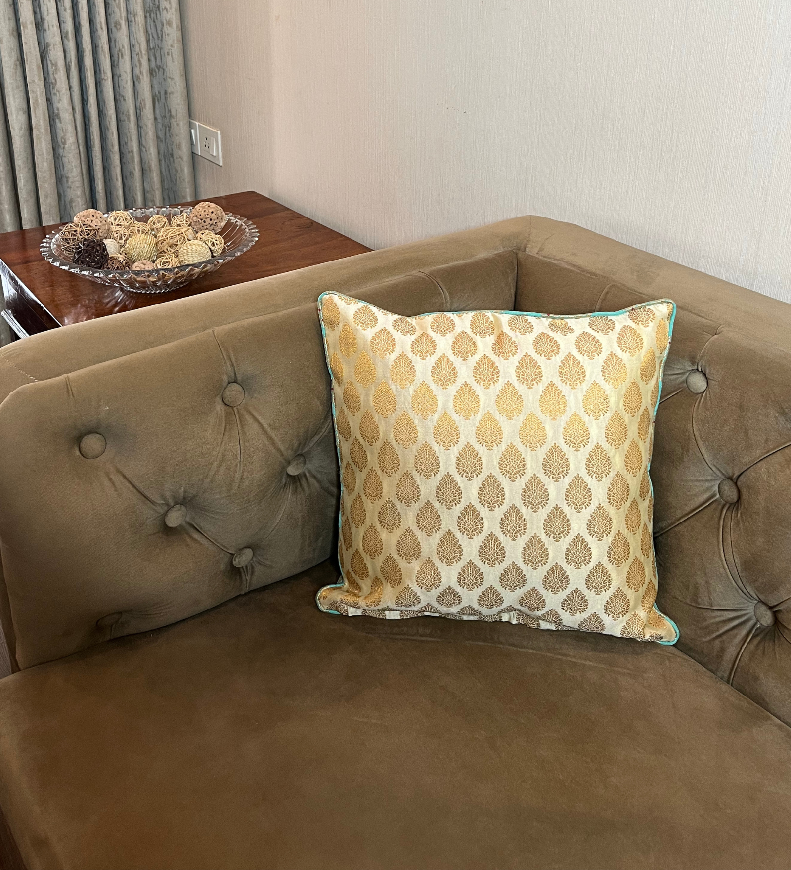 Topaz Gold Brocade Cushion Cover