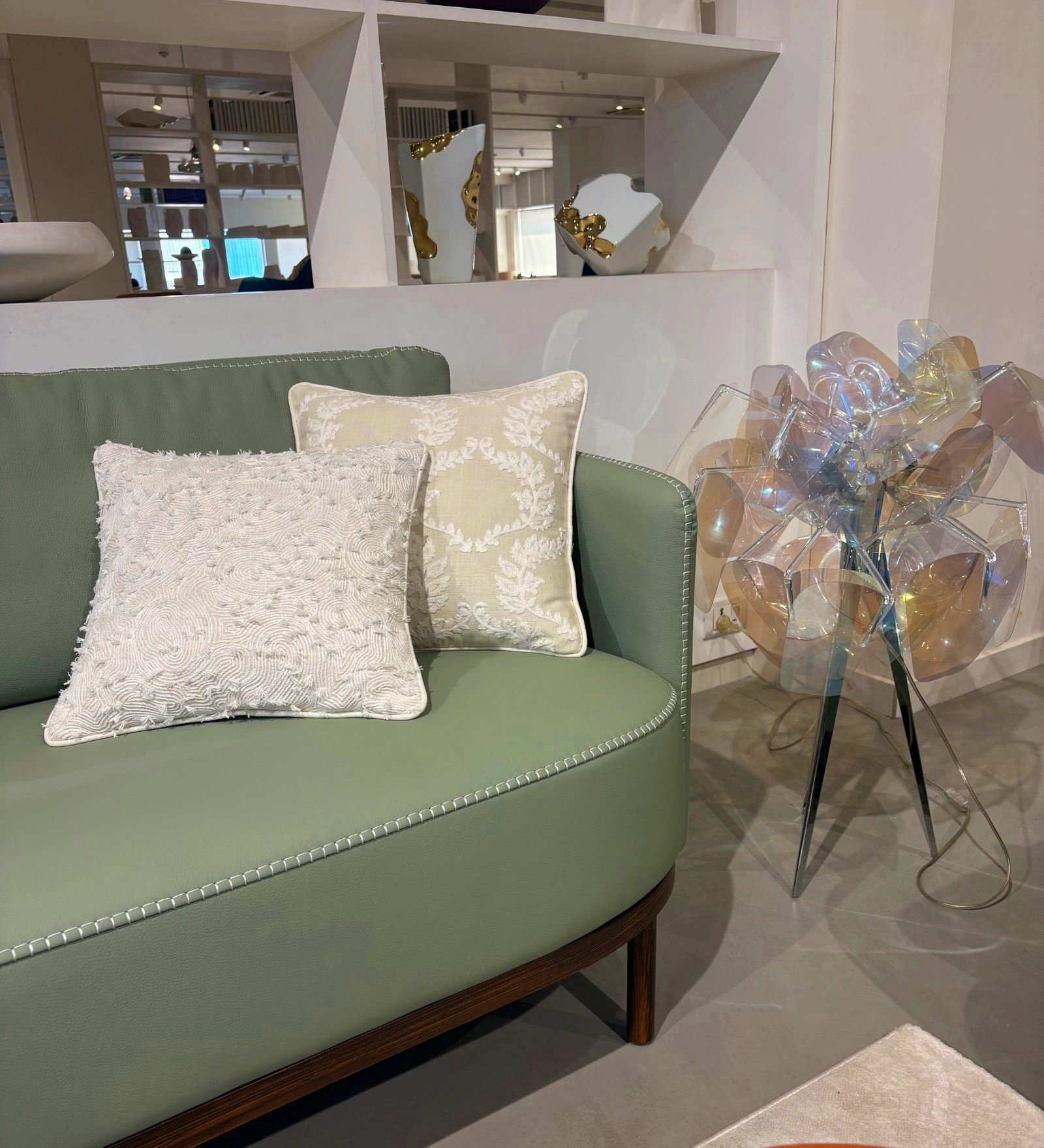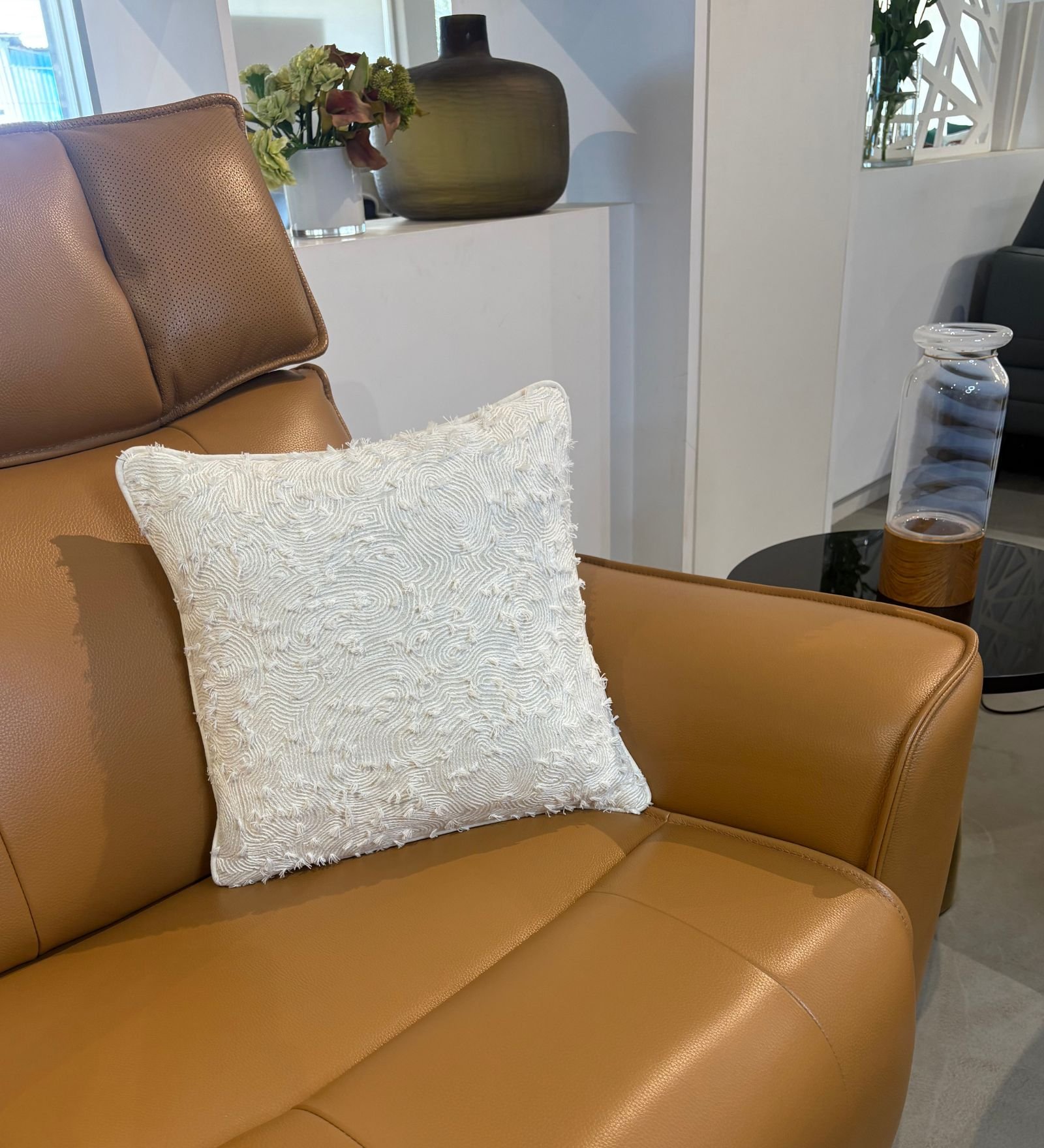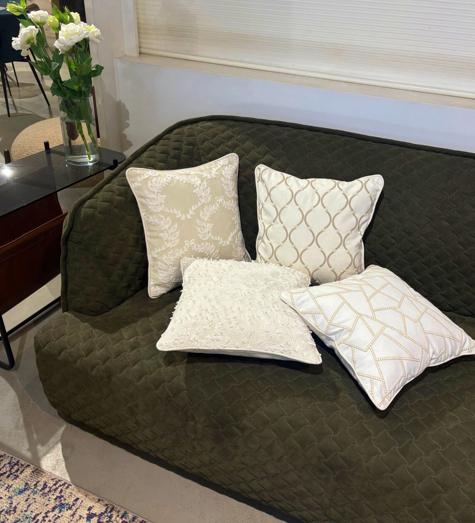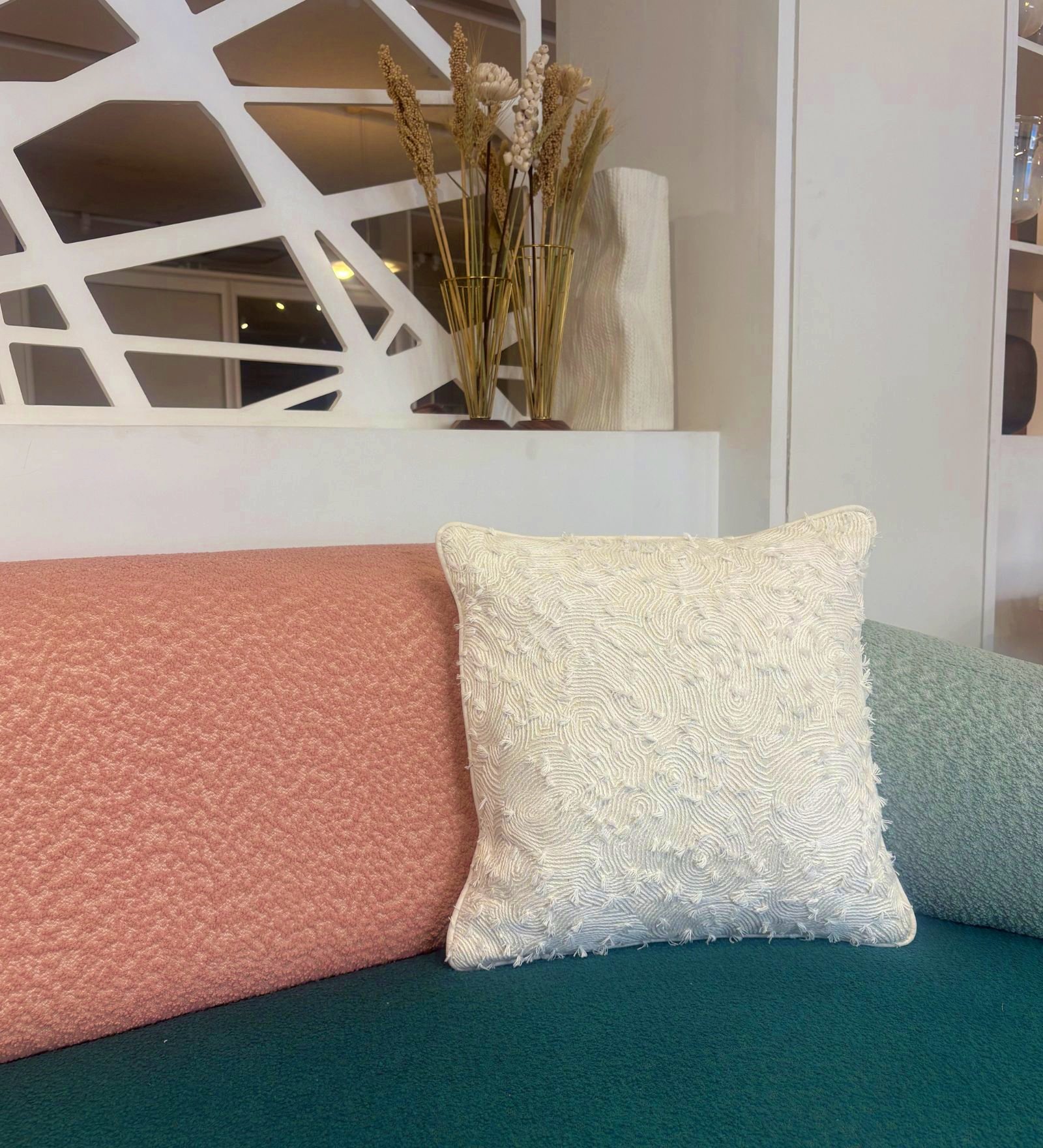 When styling your cushions this season, consider adding texture to elevate the look. Pair natural fabrics or intricately patterned and embroidered cushion covers with neutral tones to create a soft, balanced contrast that instantly brings life to your space. Start with our signature powdered and neutral Season of Light collection. Layer in our embroidered cushion covers—featuring Floral and Lattice designs—for a relaxed, inviting summer breeze vibe.