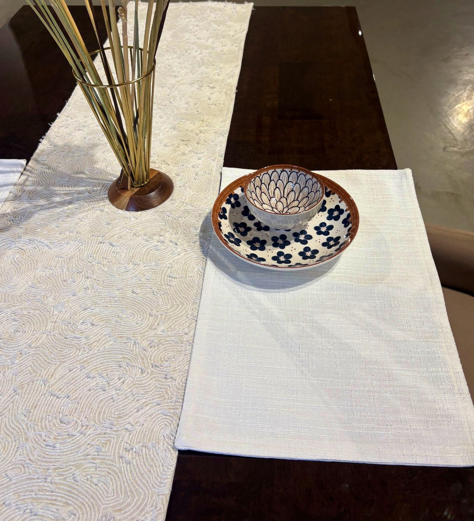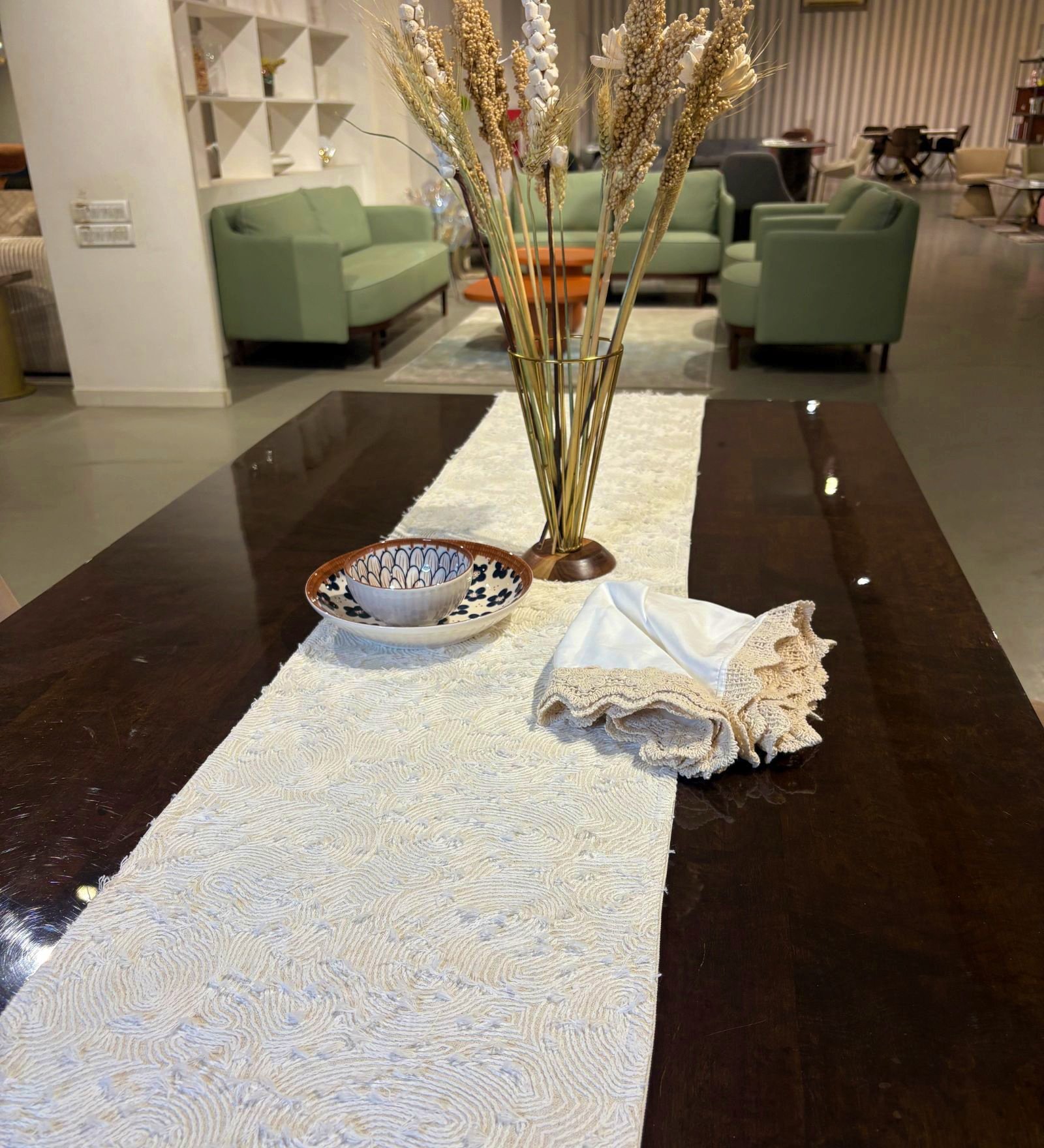 Style your tables this season with elegant layers. Our neutral-toned Season of Light table runners, elevates your dining space with embroidered Floral and Lattice patterns. Natural fabrics and detailed embroidery pair beautifully with understated palettes, creating a setting that’s graceful, warm & welcoming. Whether it’s a casual brunch or an evening soiree, these layered accents add an easy summer-ready charm. Transform everyday dining into a visual treat with textured table runners that blend craftsmanship with a homely elegance.