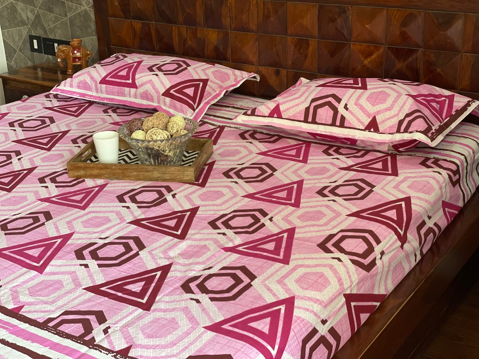 Triangle and Hexagon Bedsheet Pink