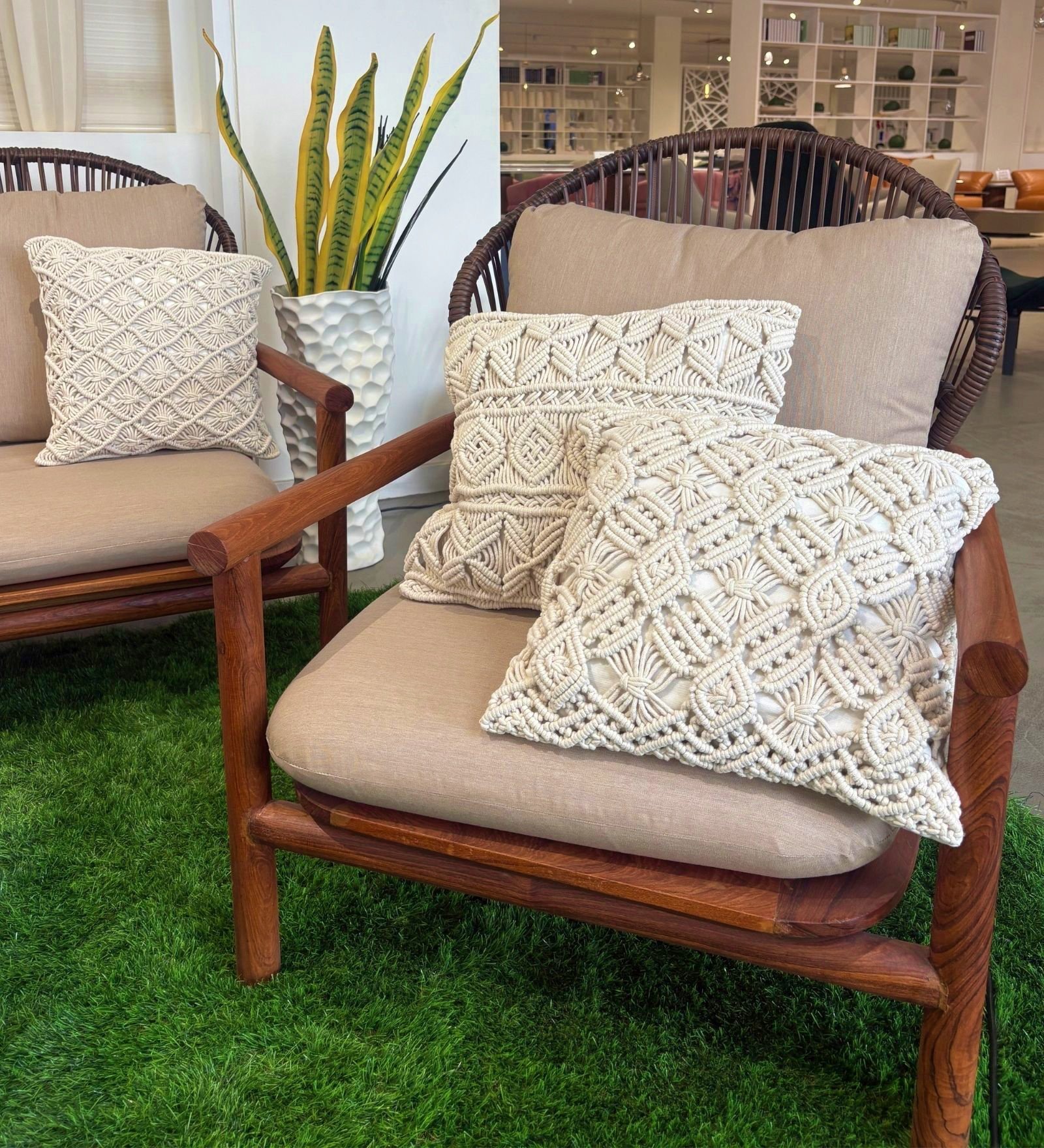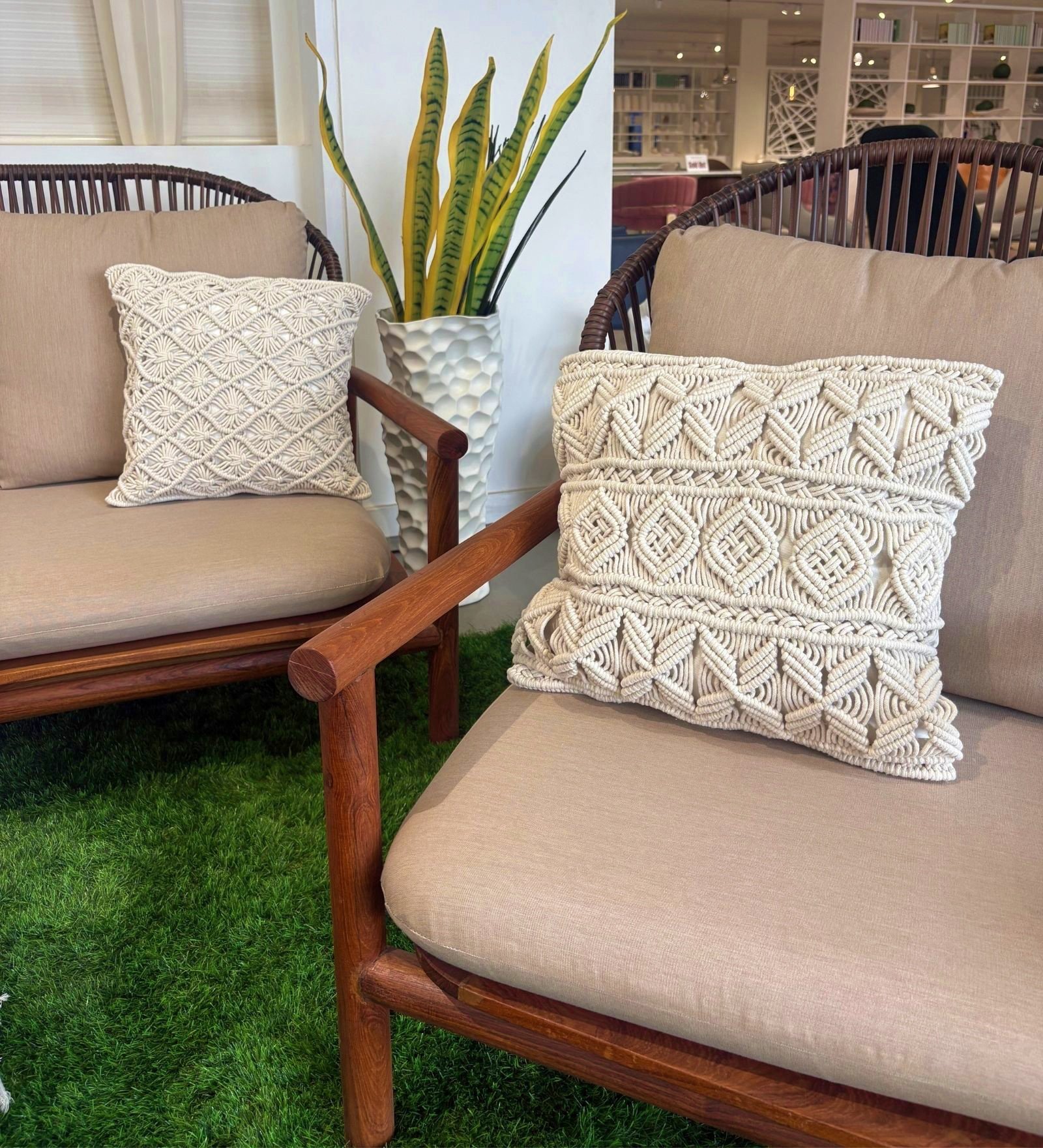 Our trendy boho-chic inspired cushion covers are made by Macramé, the art of knotting strings in patterns with natural cotton cords. It’s a trend that’s been resurrected from the 70s and it’s even better than before. Add artisanal charm to your space with our handcrafted macramé cushion covers. These covers bring a touch of texture, warmth, and boho elegance to your home. Perfect for sofas or accent chairs in your balcony, patio or garden, they blend timeless craftsmanship with contemporary style.
