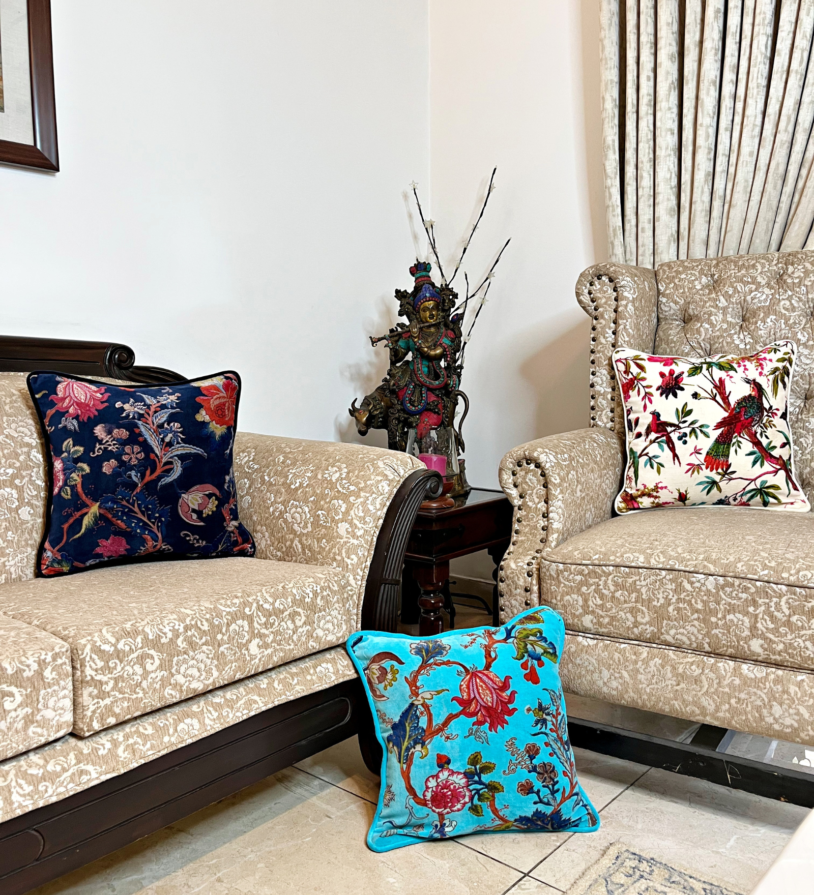 Our opulent velvet cushion covers are printed with intricate floral or embroidered with ornamental motifs. Their rich colours & luster will bring elegance and timelessness to your home allowing you to show personality and flair any season.
